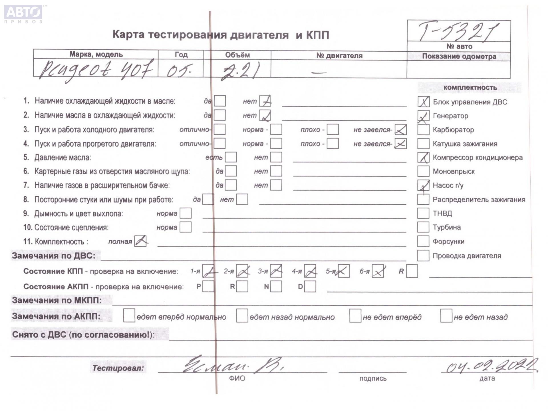 | Марка / Модель / Год: | Peugeot 407 2006 |
