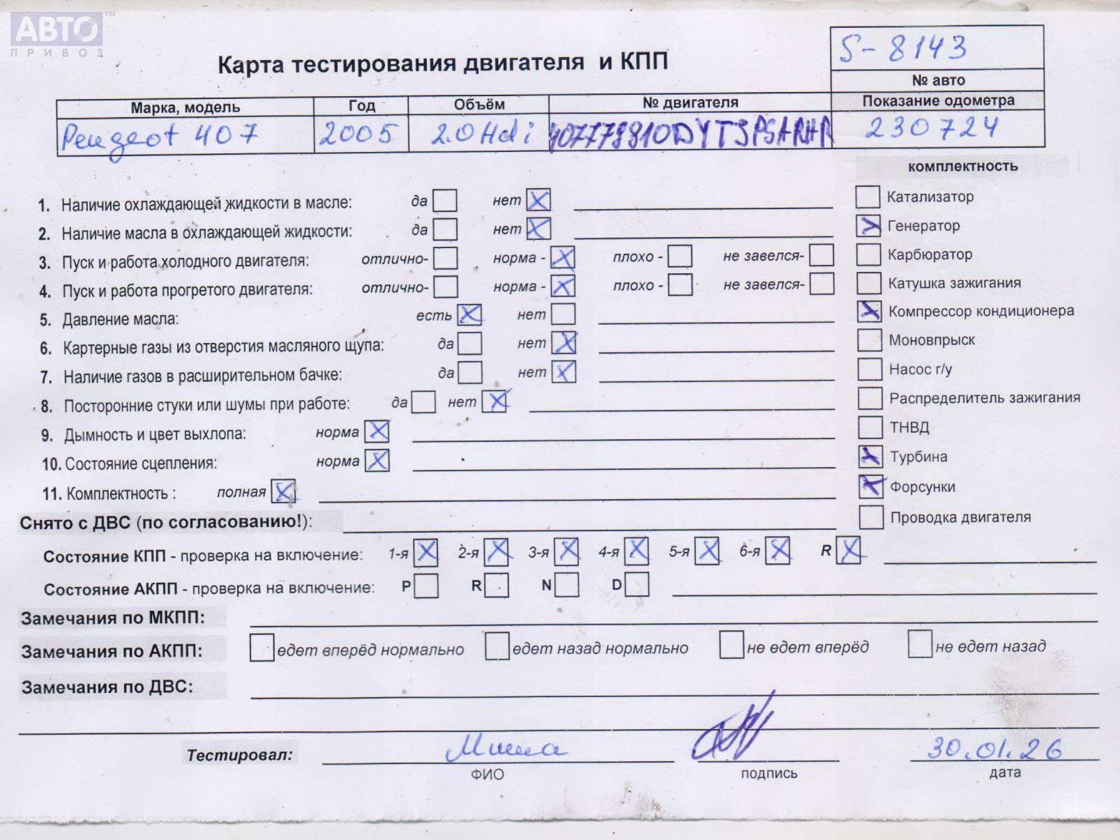 | Марка / Модель / Год: | Peugeot 407 2005 |