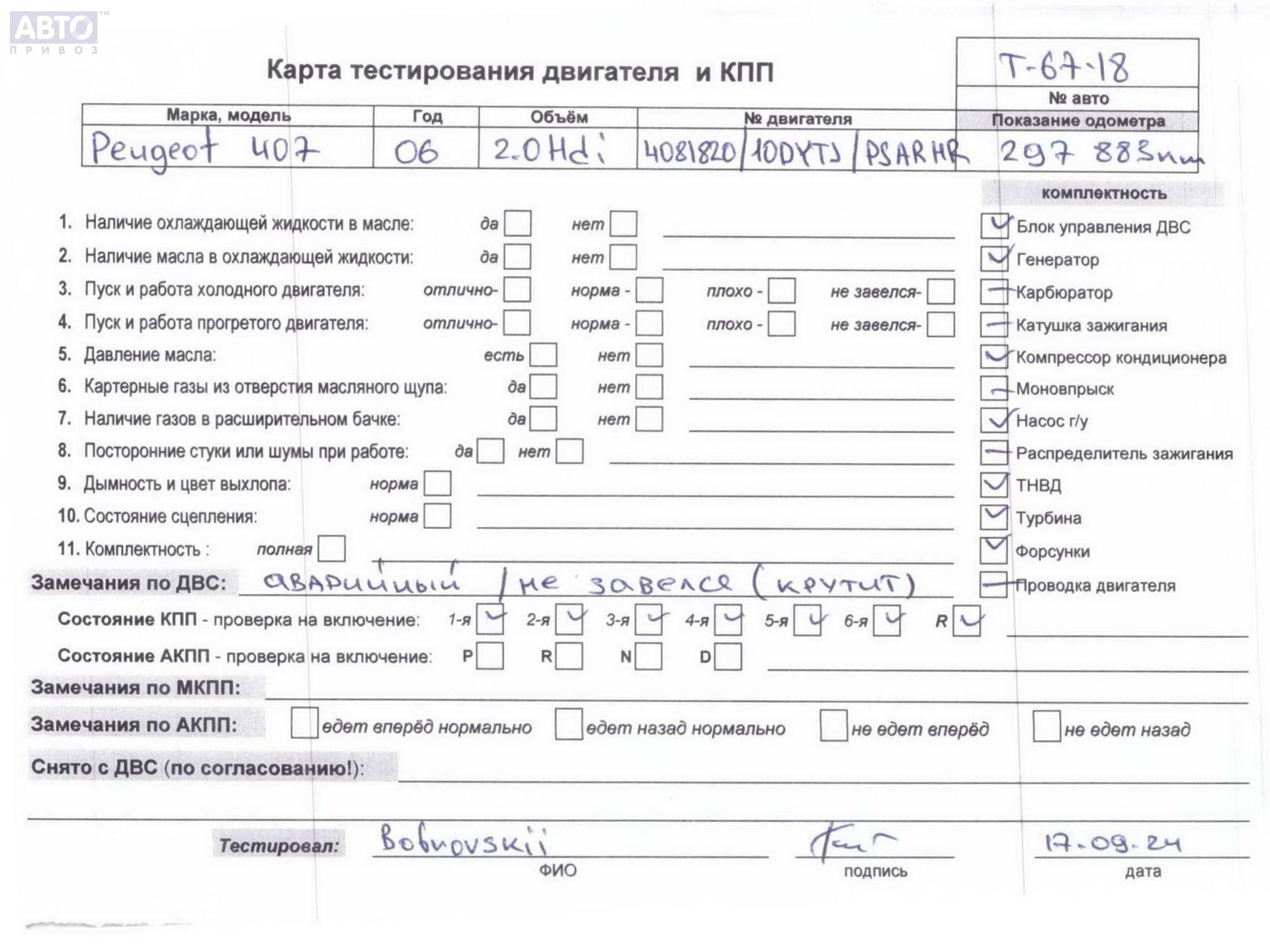 | Марка / Модель / Год: | Peugeot 407 2005 |