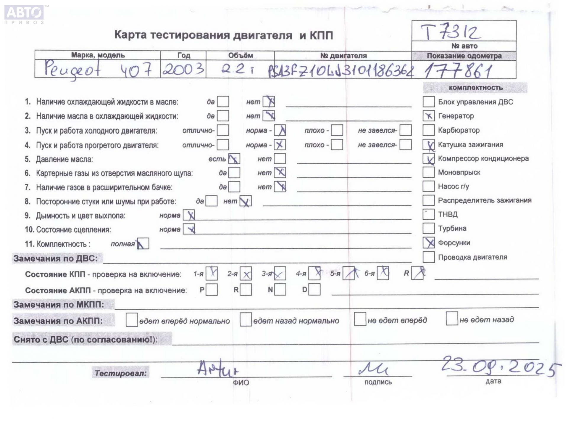 | Автомобиль / VIN: | T7312 VF36D3FZH21134490 |