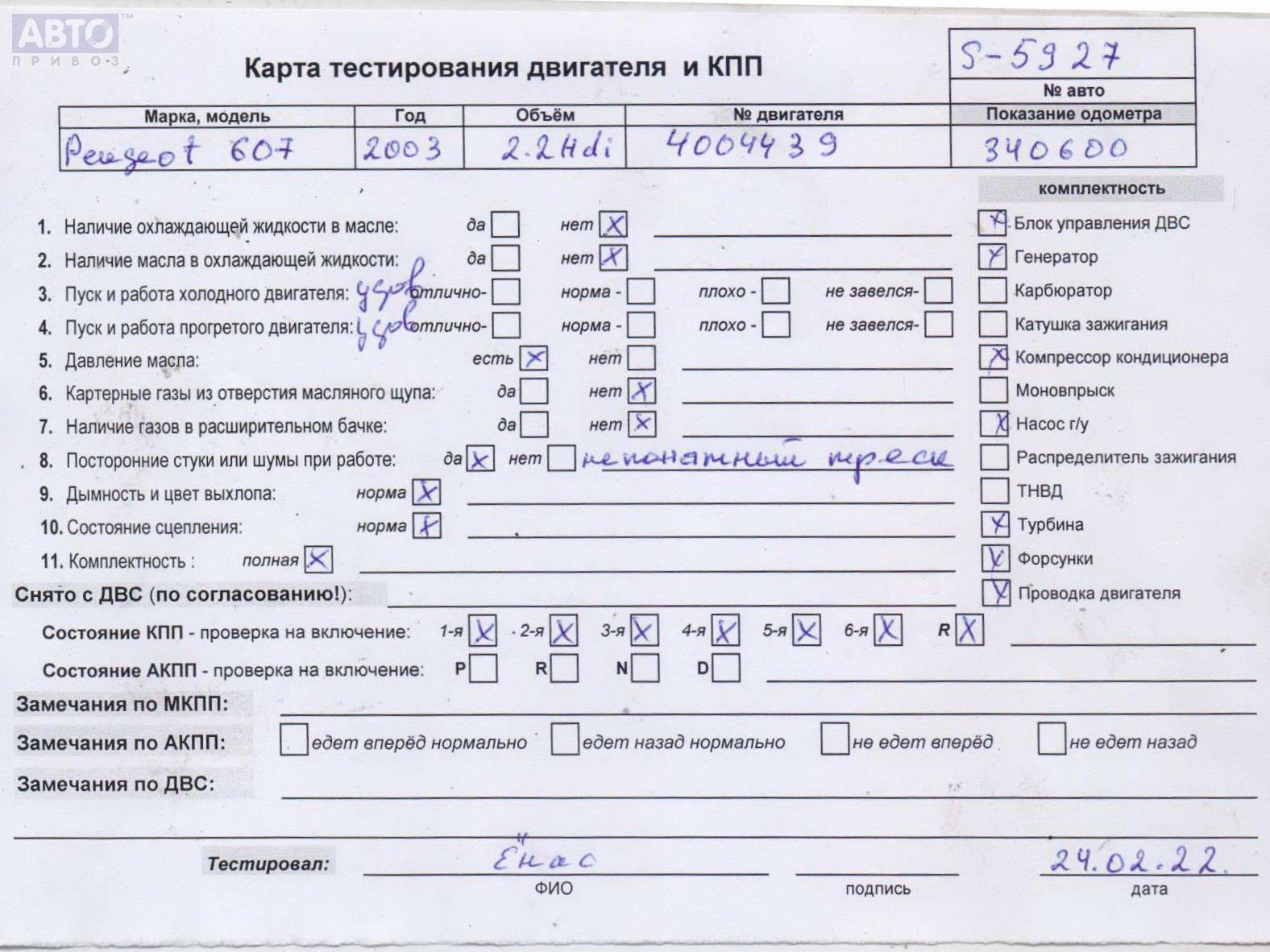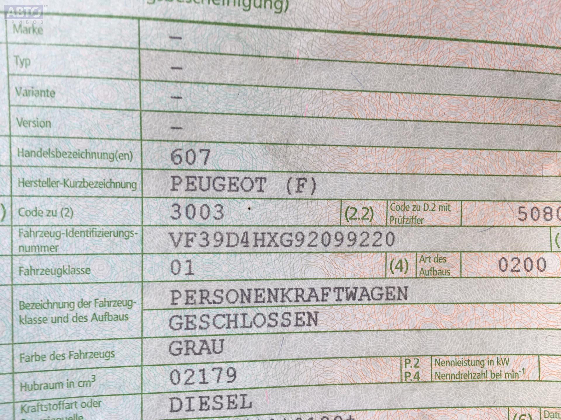 | Марка / Модель / Год: | Peugeot 607 2003 |