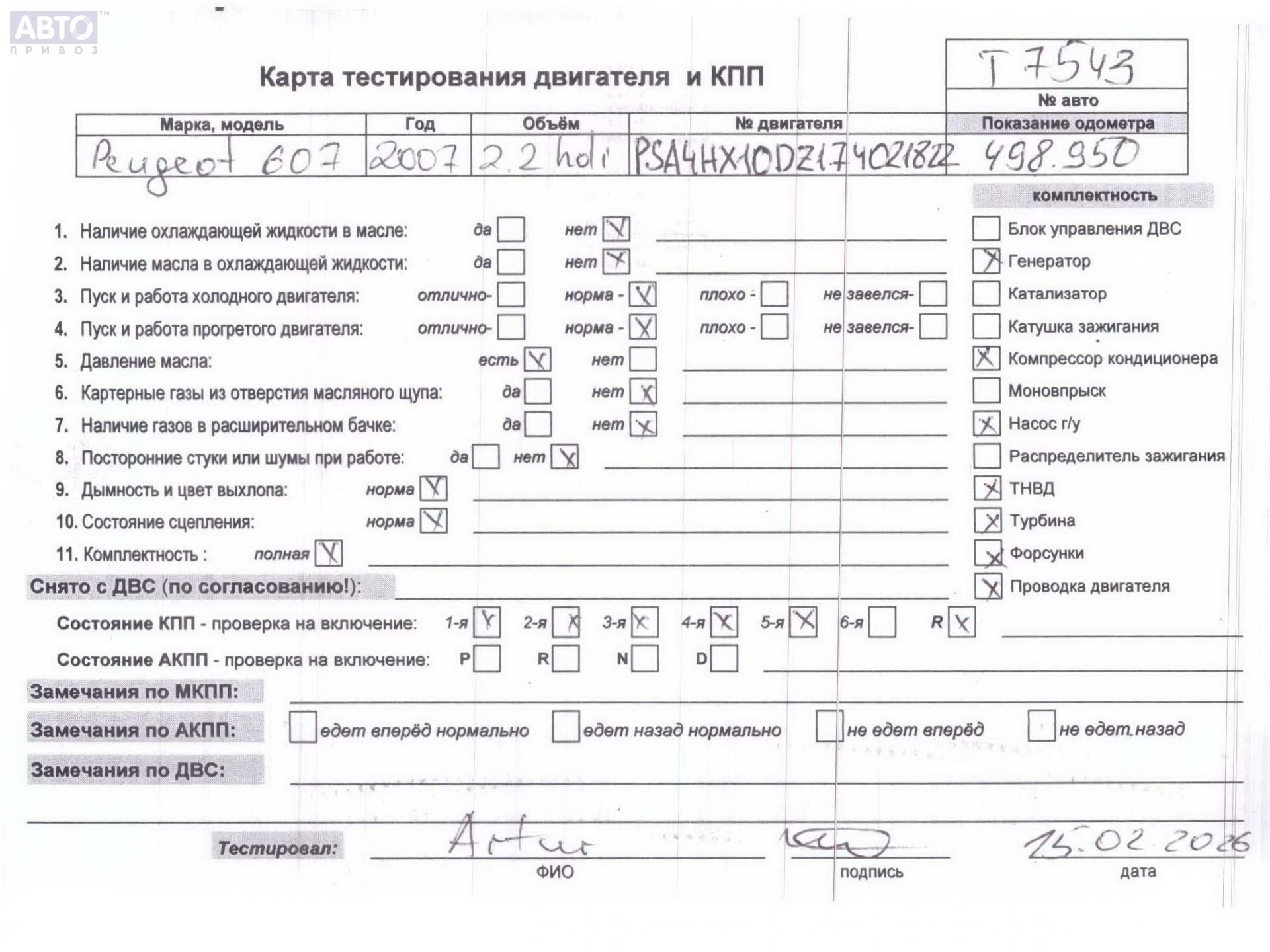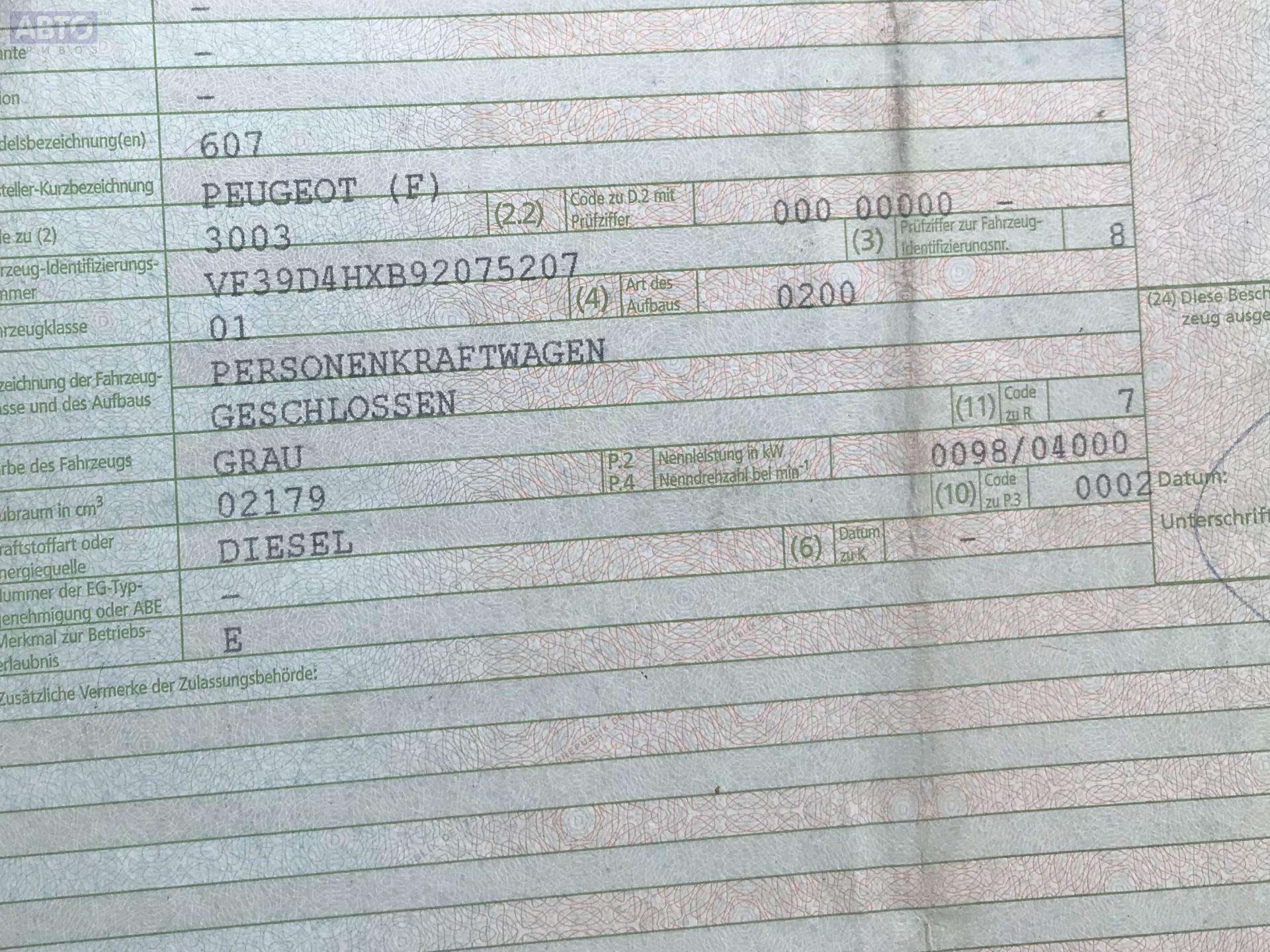 | Марка / Модель / Год: | Peugeot 607 2002 |