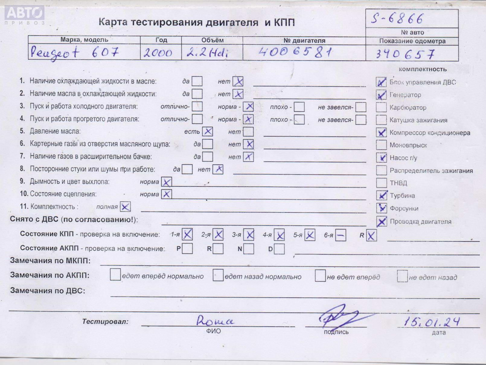 | Марка / Модель / Год: | Peugeot 607 2000 |
