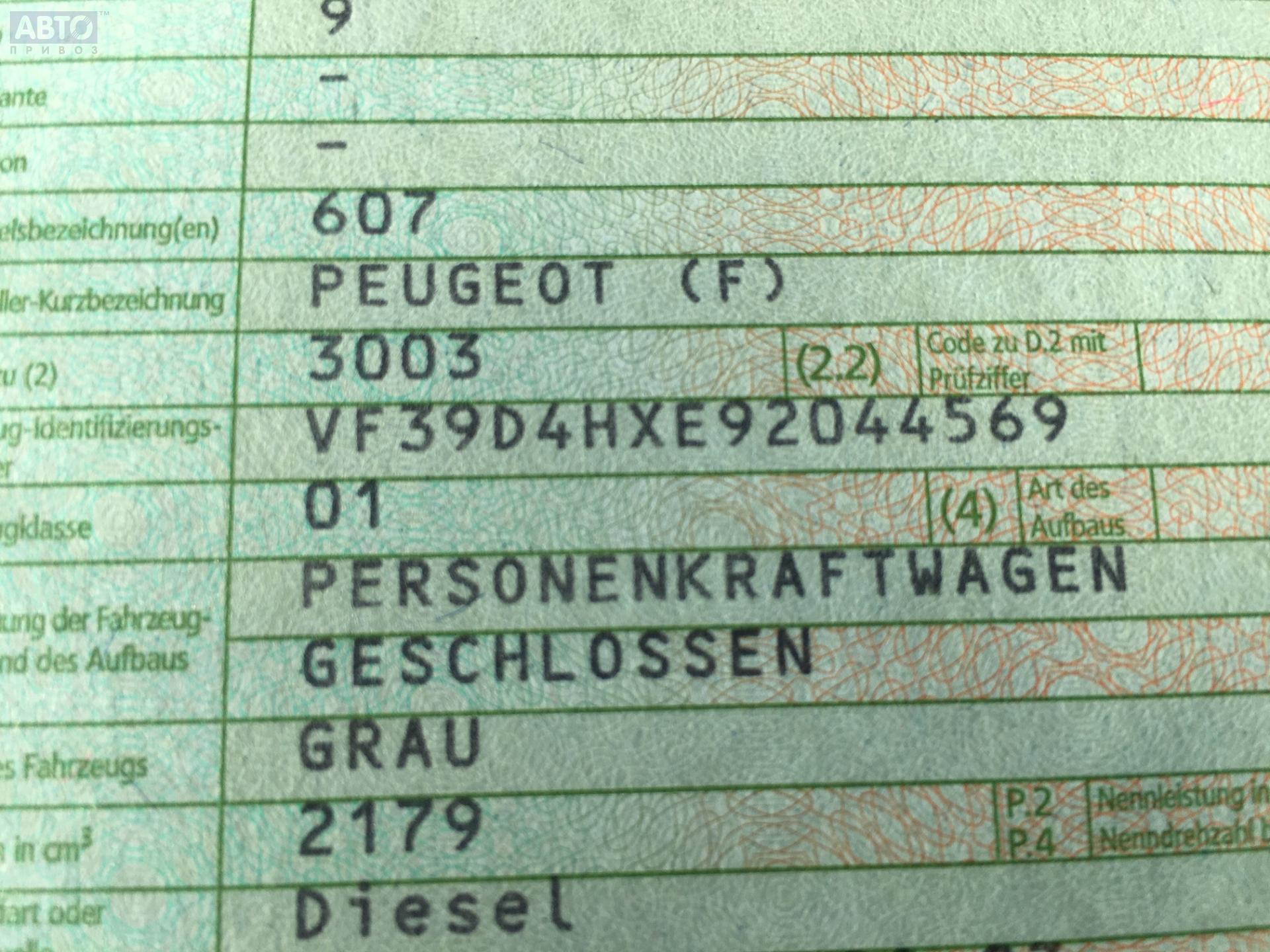 | Марка / Модель / Год: | Peugeot 607 2001 |