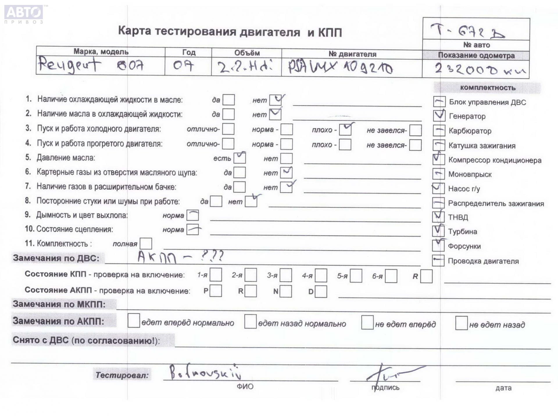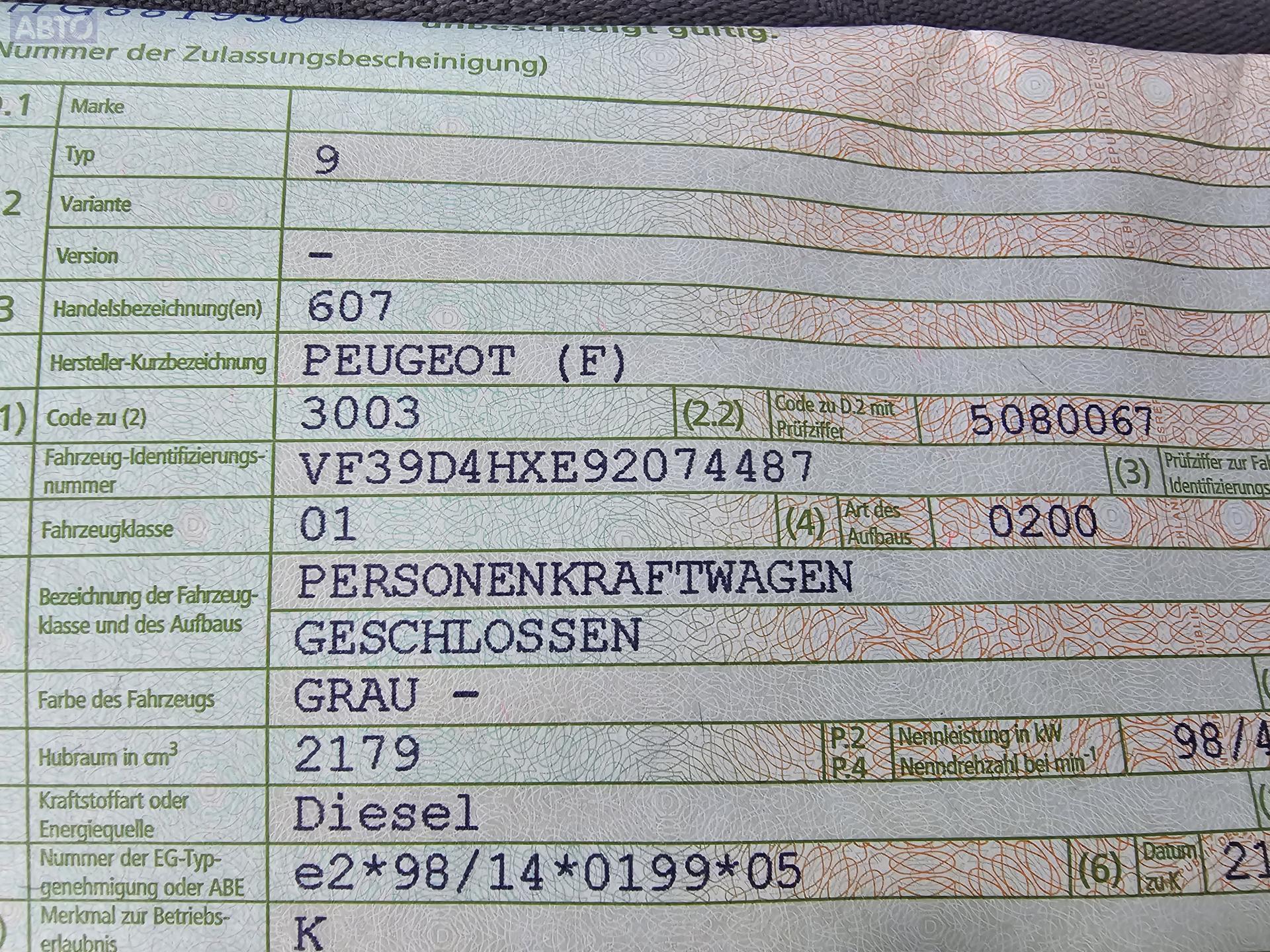 | Марка / Модель / Год: | Peugeot 607 2002 |