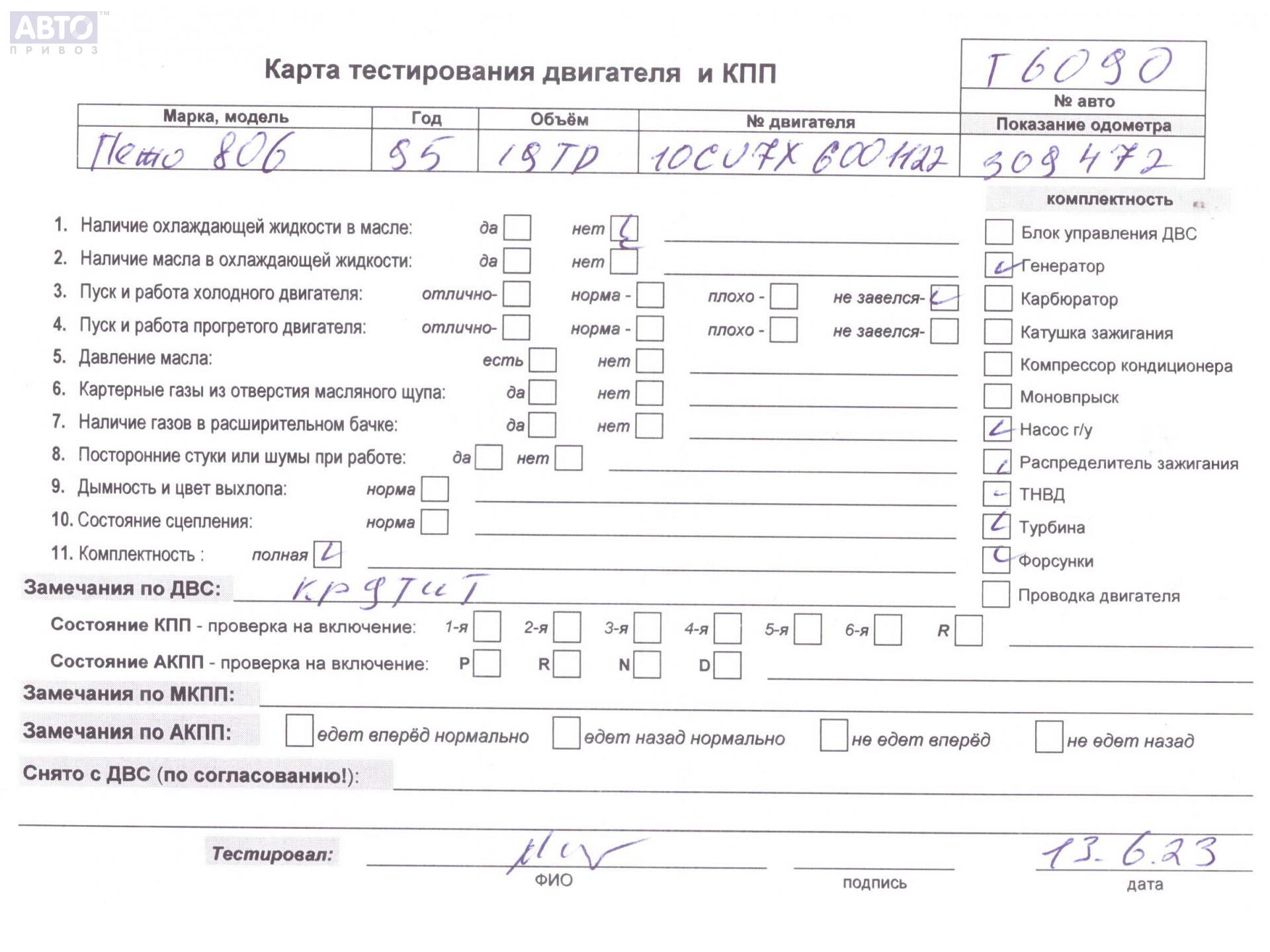 | Автомобиль / VIN: | T6090 VF3221DH212057715 |