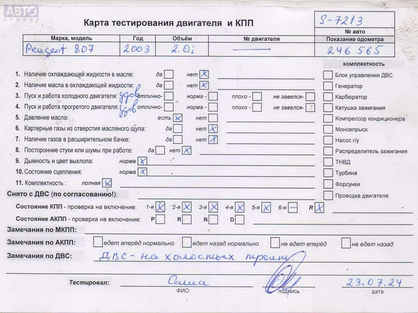 | Марка / Модель / Год: | Peugeot 807 2003 |