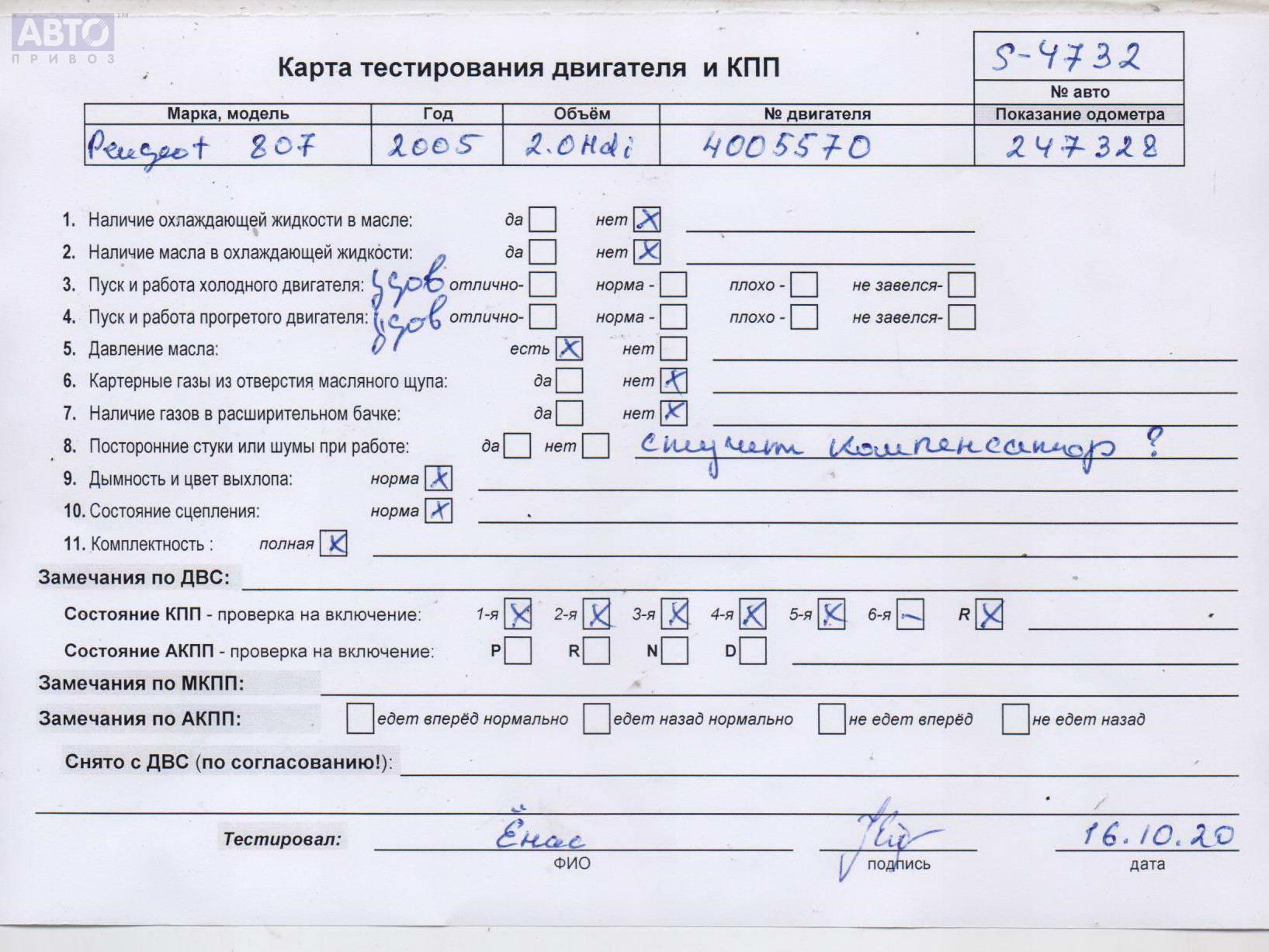 | Марка / Модель / Год: | Peugeot 807 2005 |