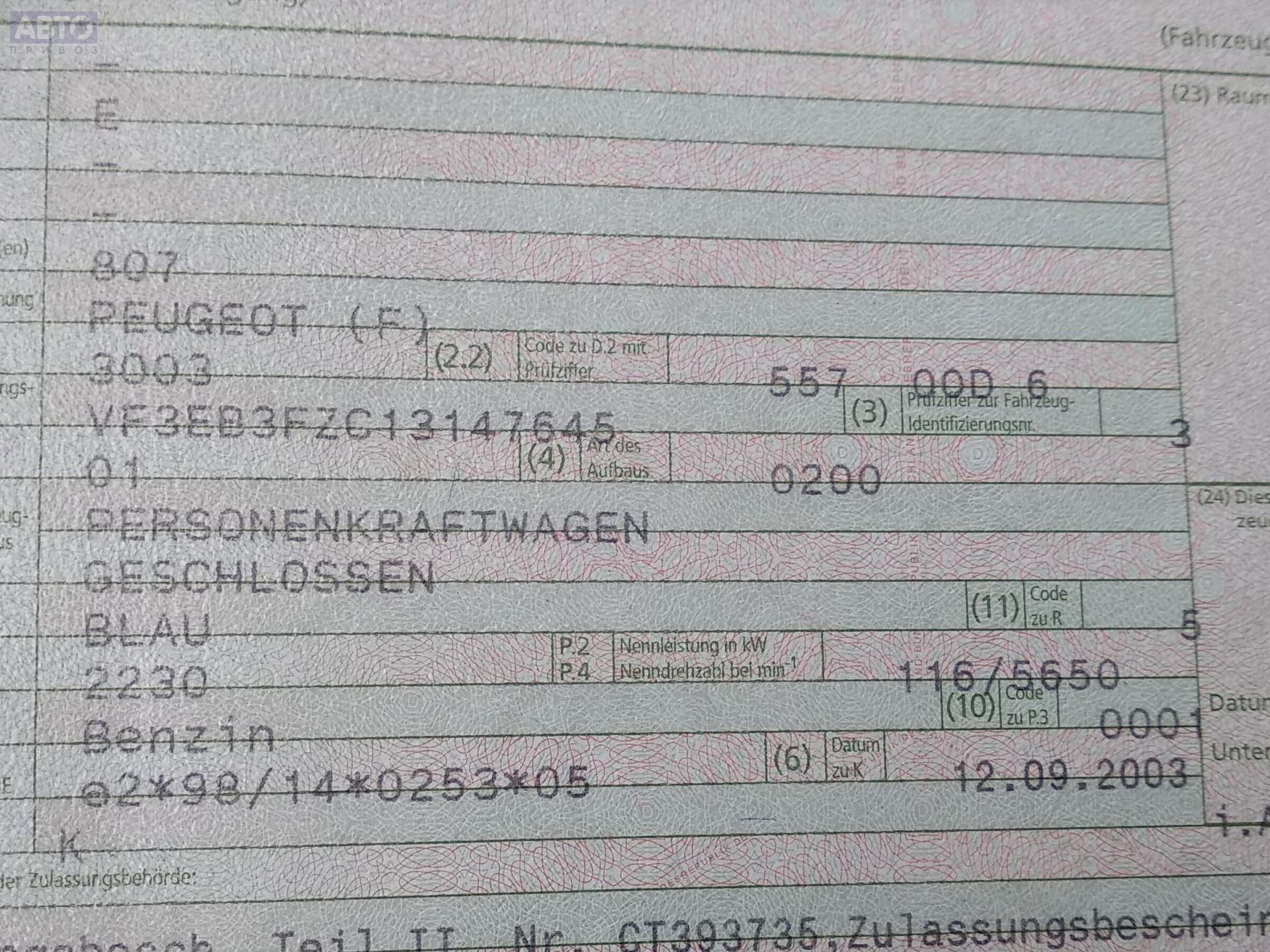 | Марка / Модель / Год: | Peugeot 807 2004 |