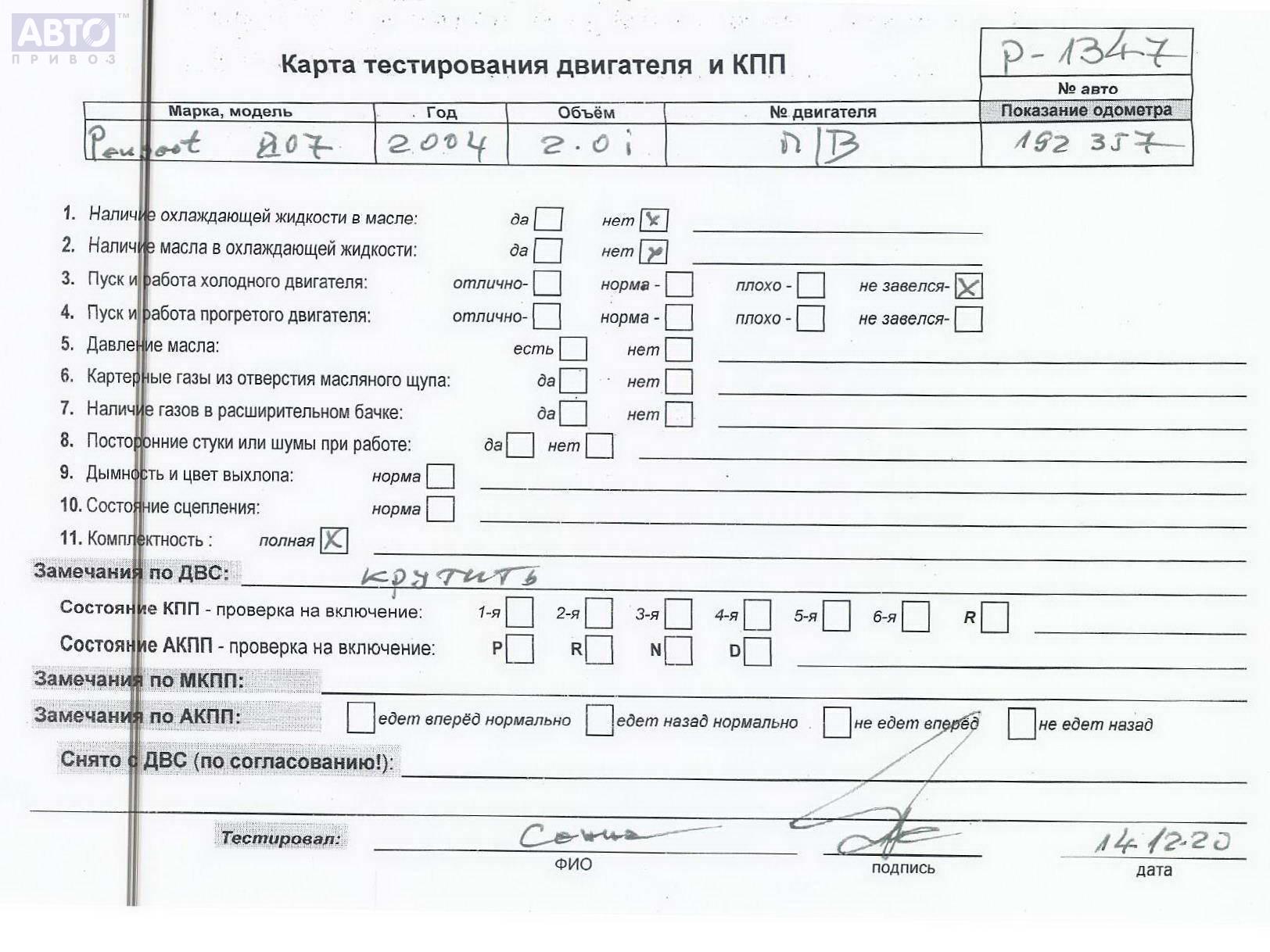 | Автомобиль / VIN: | P1347 VF3EB3FZC13147645 |