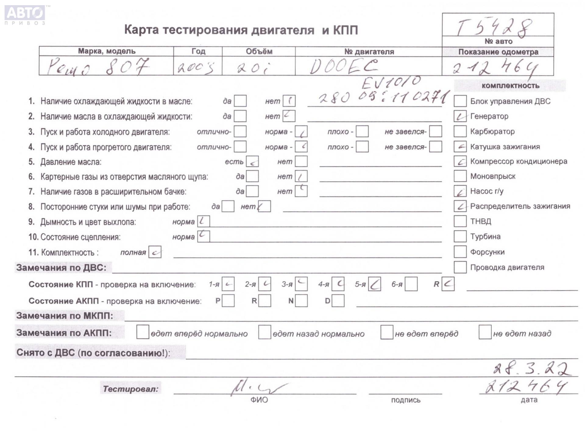 | Марка / Модель / Год: | Peugeot 807 2003 |