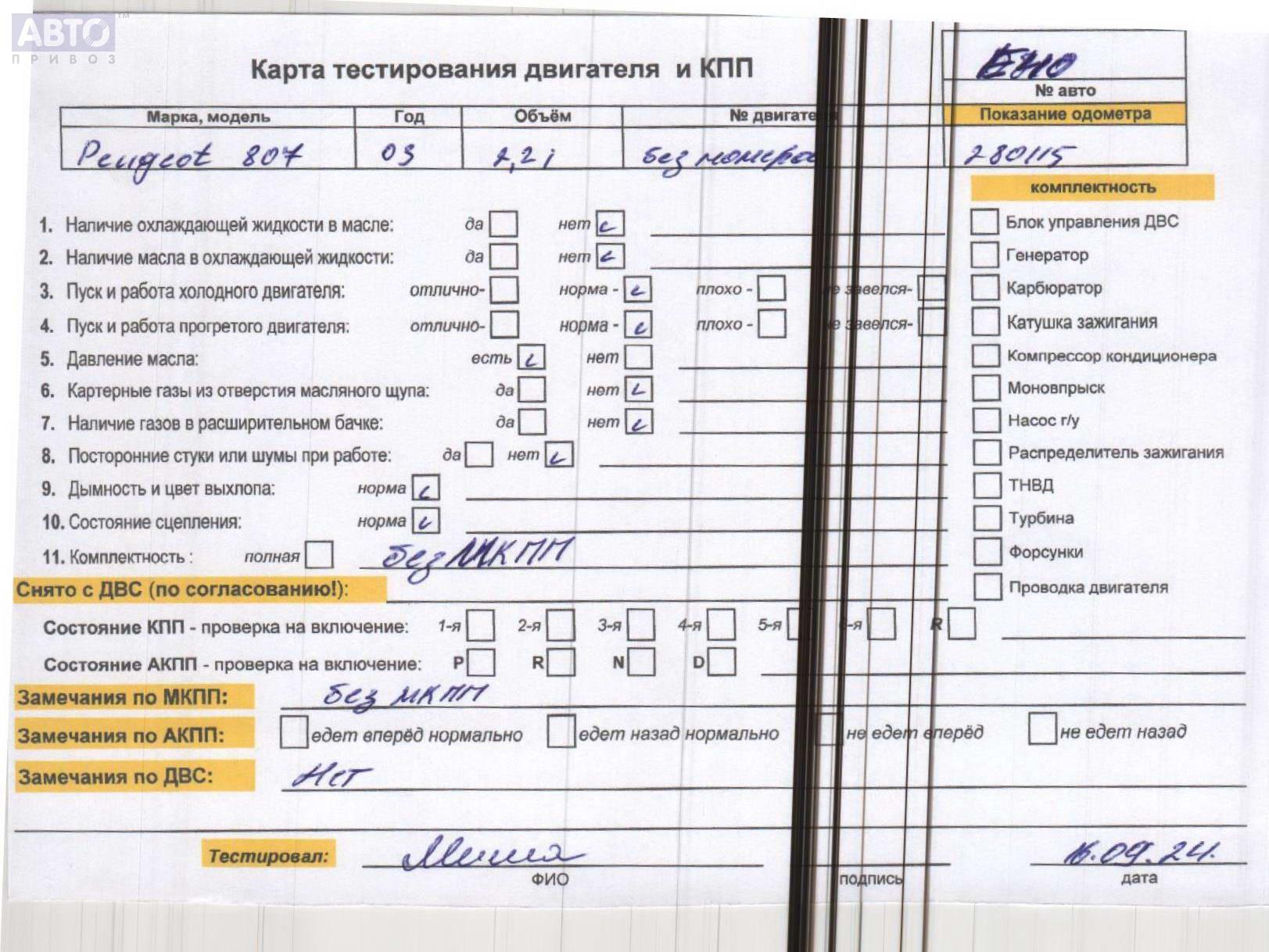| Марка / Модель / Год: | Peugeot 807 2003 |