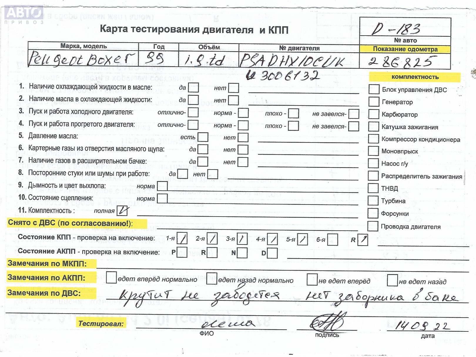 | Автомобиль / VIN: | D0183 VF3231A8215826527 |