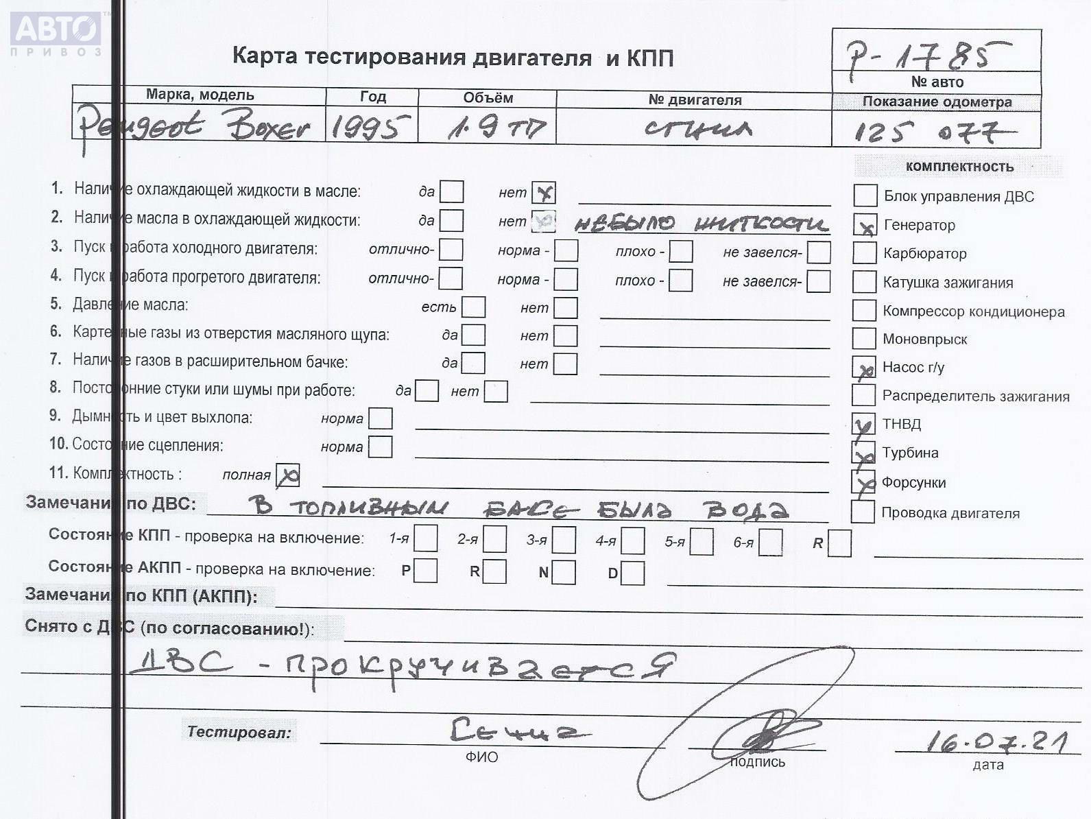 | Марка / Модель / Год: | Peugeot Boxer (1994-2002) 1995 |