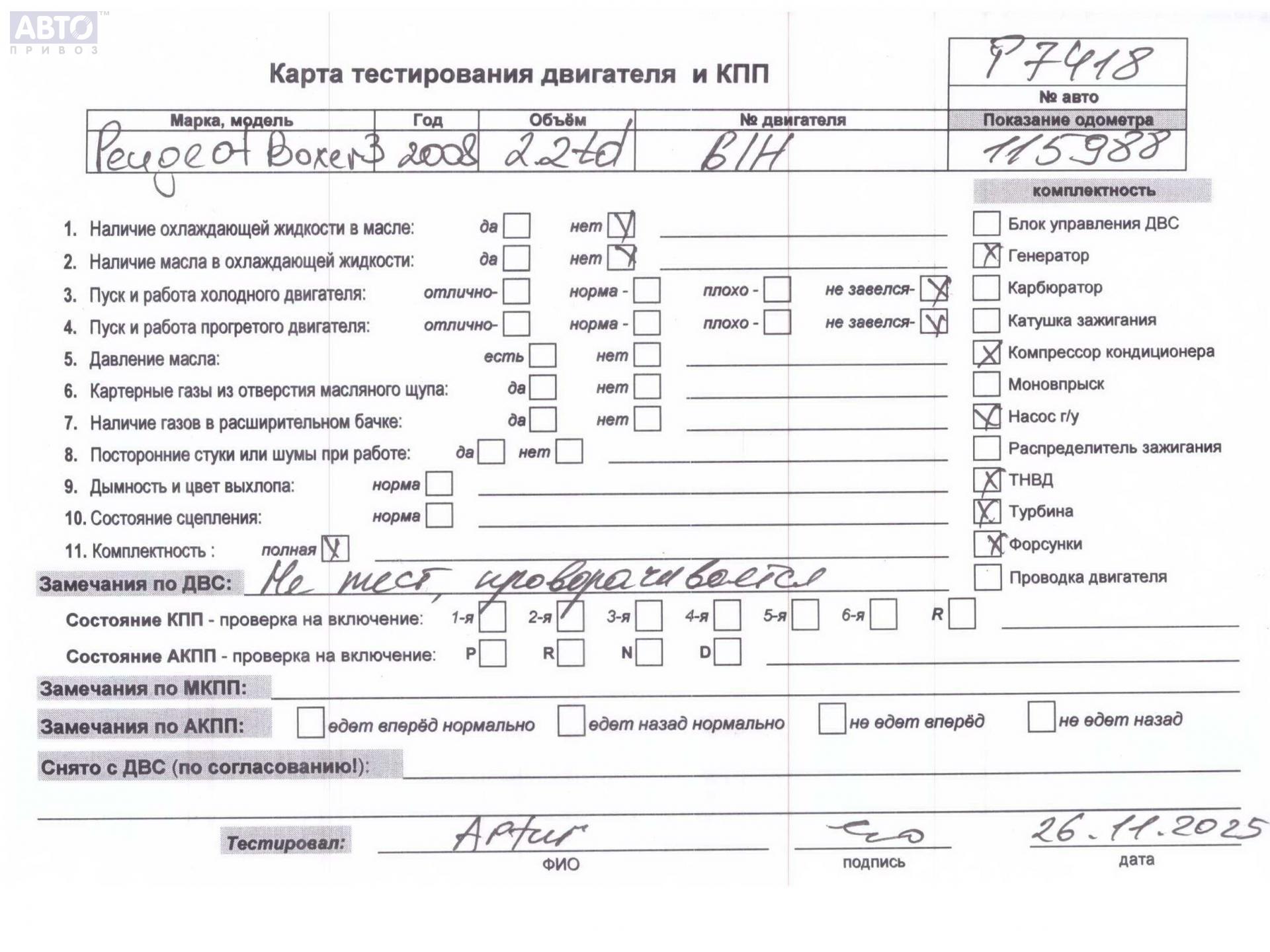 | Марка / Модель / Год: | Peugeot Boxer (2006-2014) 2008 |