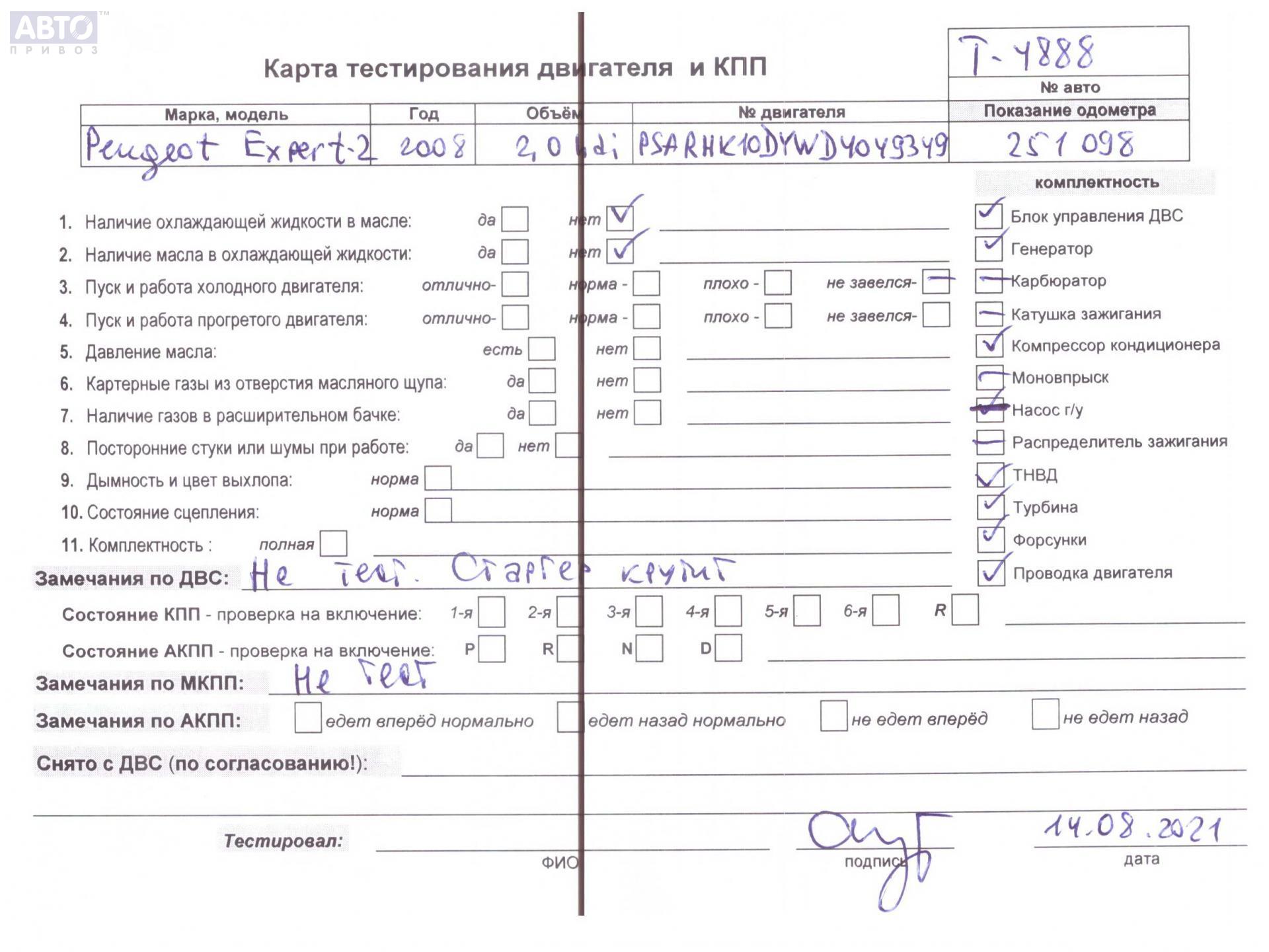| Марка / Модель / Год: | Peugeot Expert (2007-2016) 2008 |