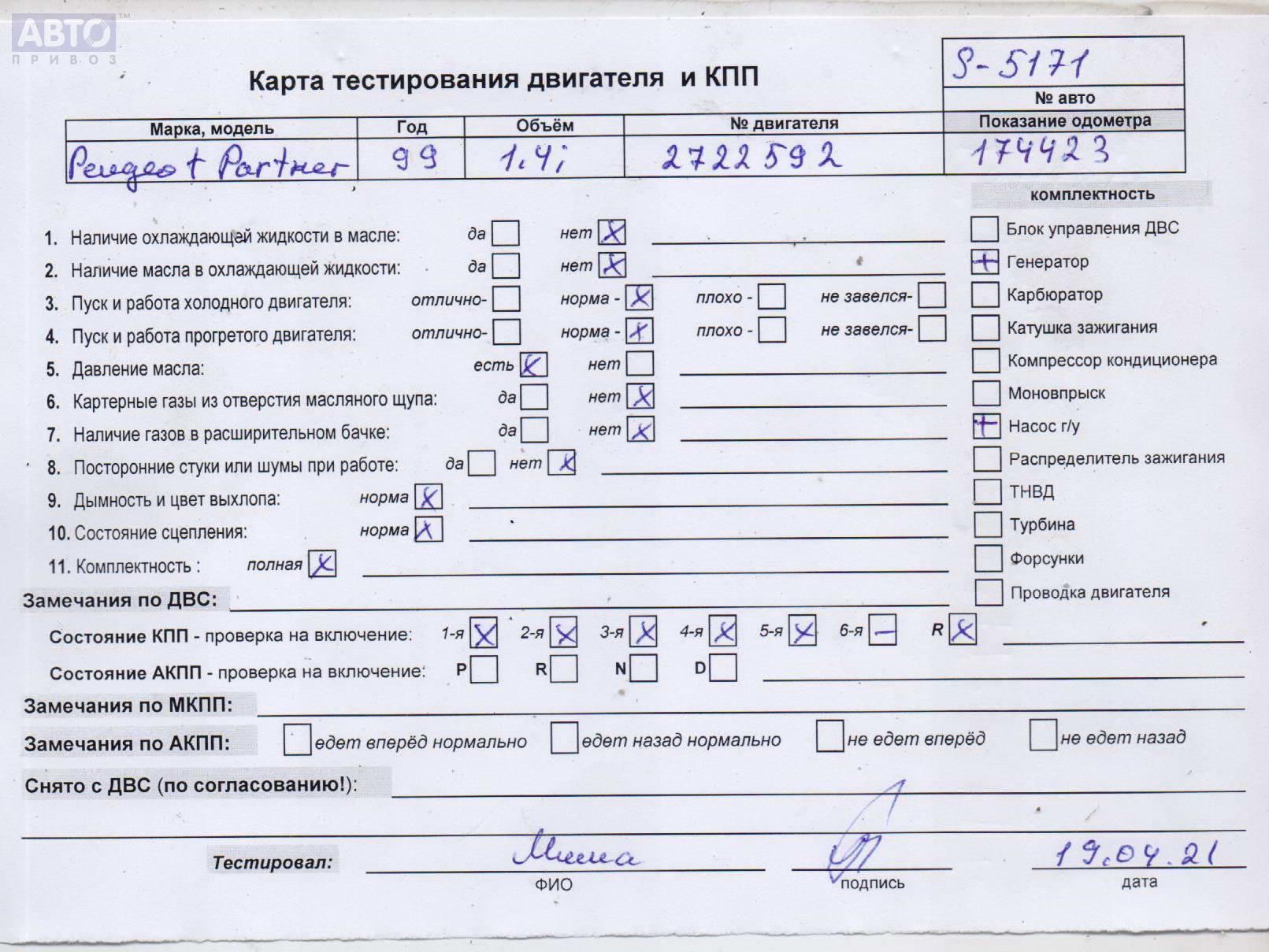 | Марка / Модель / Год: | Peugeot Partner (1996-2002) 1999 |