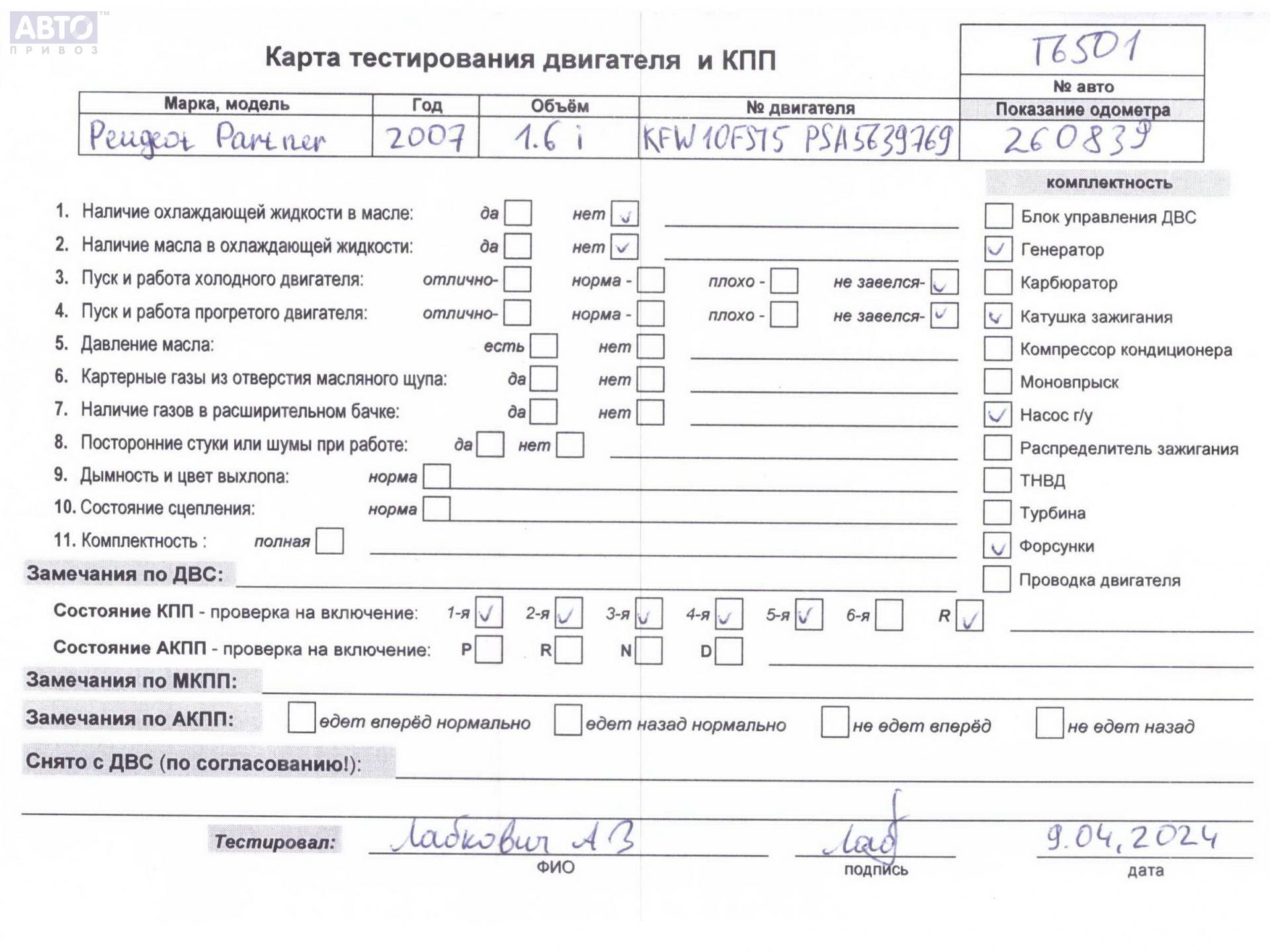 | Автомобиль / VIN: | T6501 VF3GJKFWC95265754 |