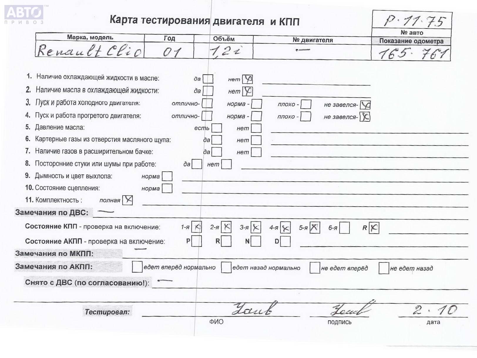 | Марка / Модель / Год: | Renault Clio II (1998-2008) 2002 |