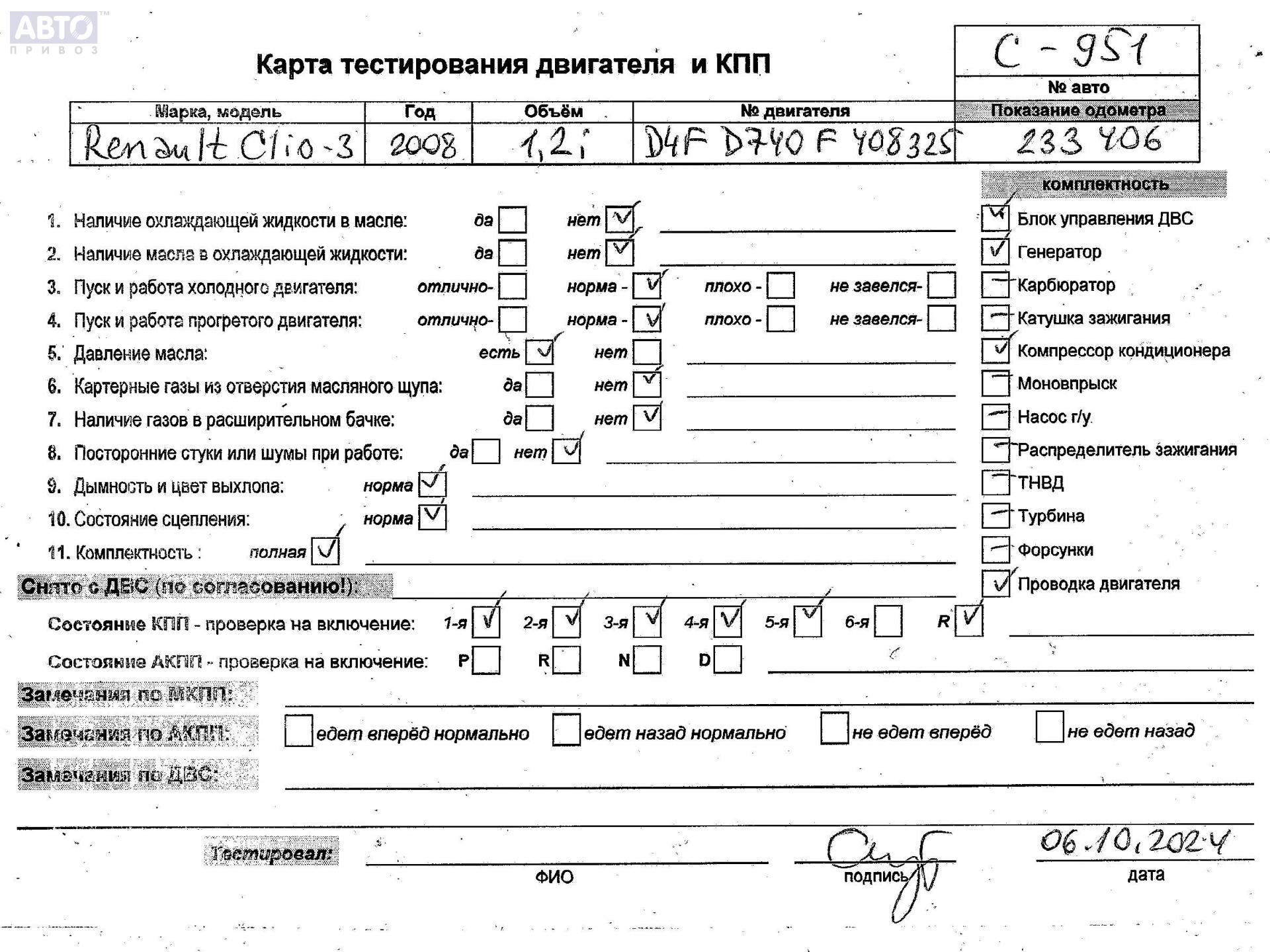 | Автомобиль / VIN: | C0951 VF1KR1JBH40552626 |
