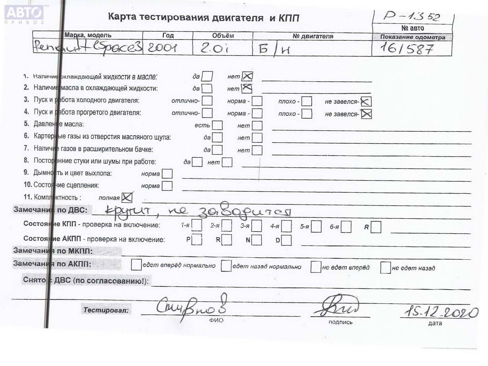 | Марка / Модель / Год: | Renault Espace III (1996-2002) 2001 |