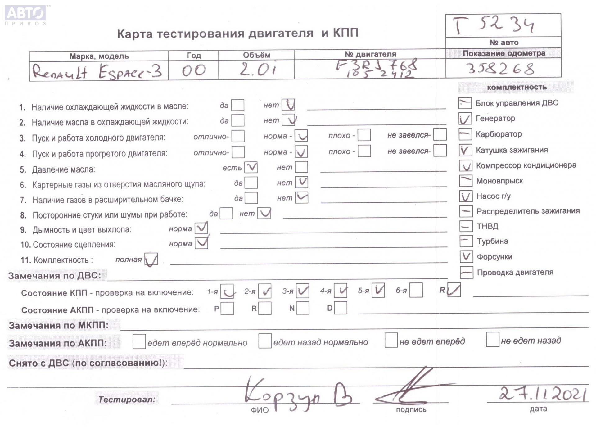 | Марка / Модель / Год: | Renault Espace III (1996-2002) 2000 |