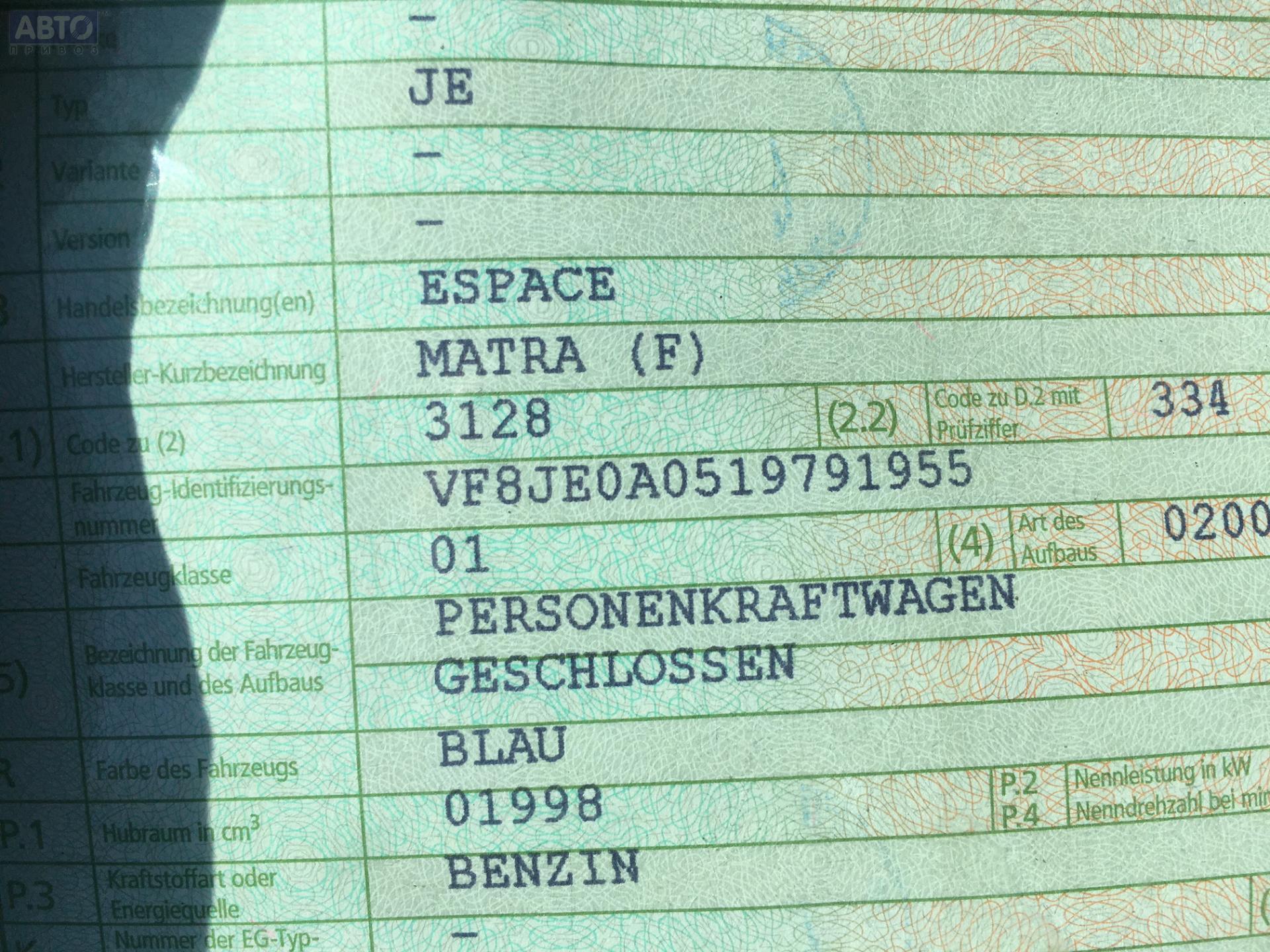 | Марка / Модель / Год: | Renault Espace III (1996-2002) 1998 |