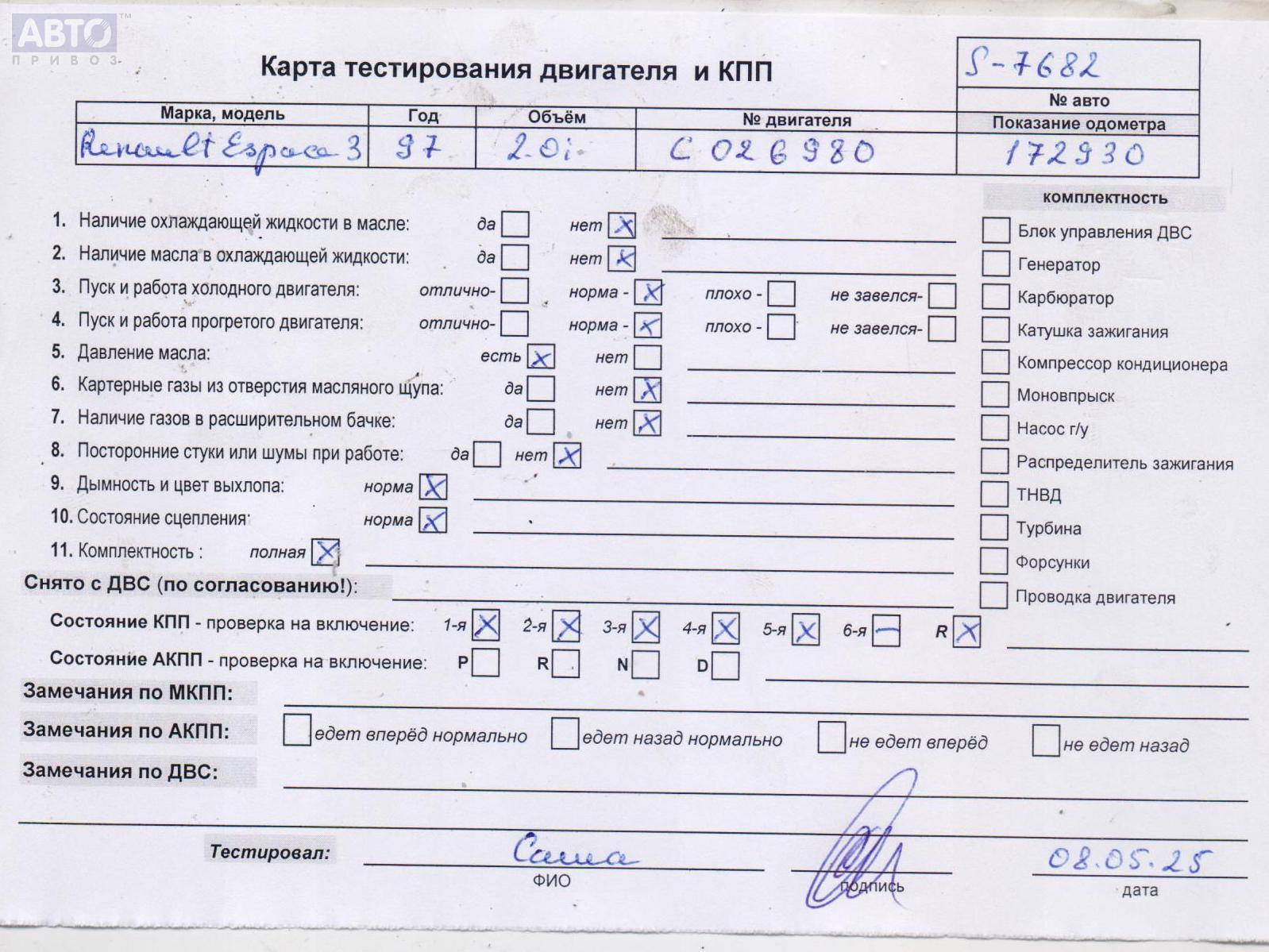 | Марка / Модель / Год: | Renault Espace III (1996-2002) 1997 |