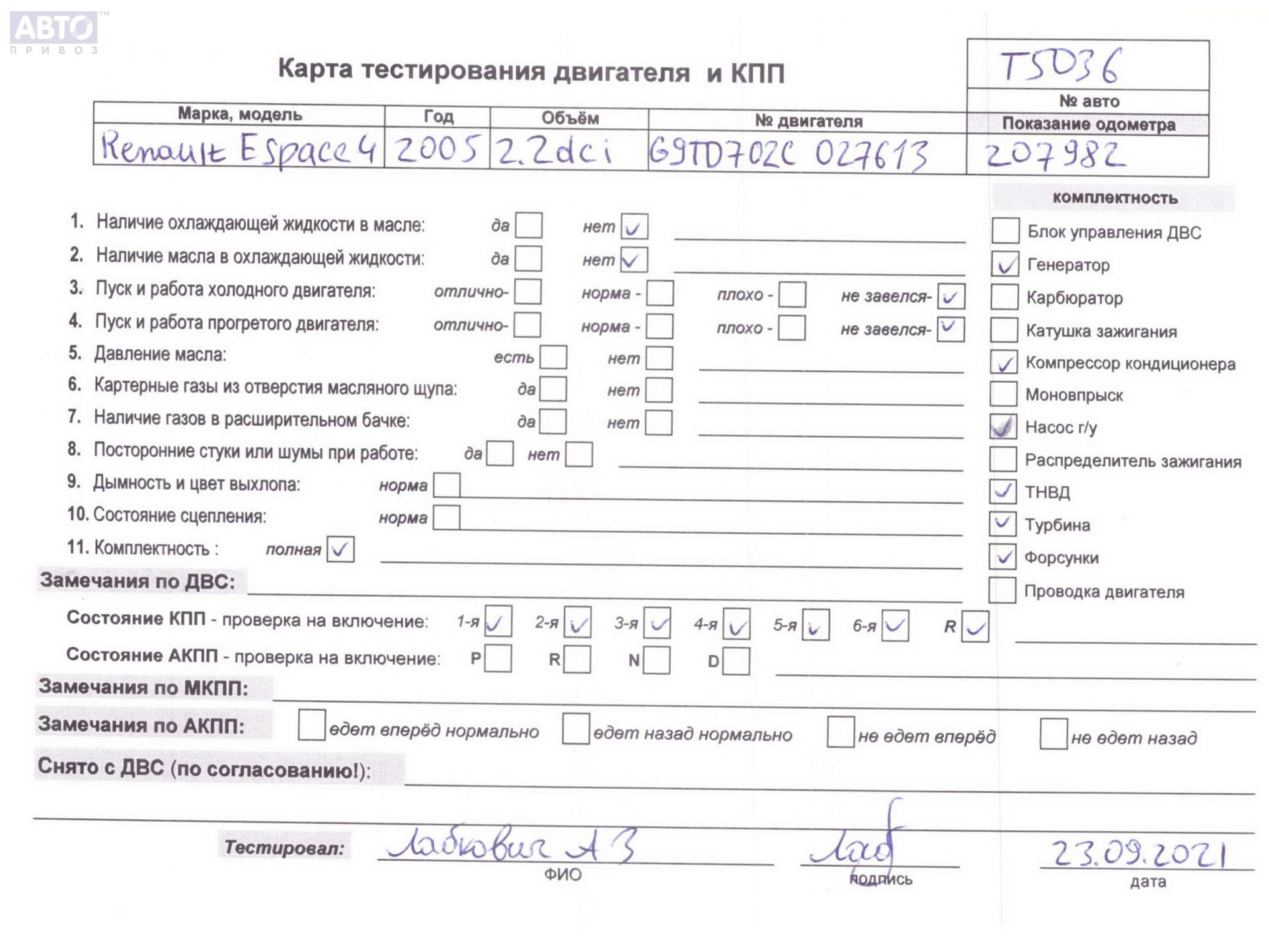 | Марка / Модель / Год: | Renault Espace IV (2002-2014) 2005 |