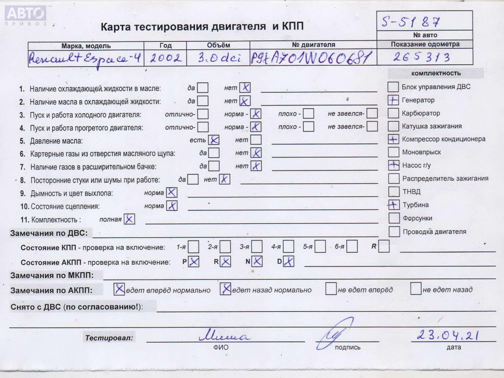 | Марка / Модель / Год: | Renault Espace IV (2002-2014) 2002 |