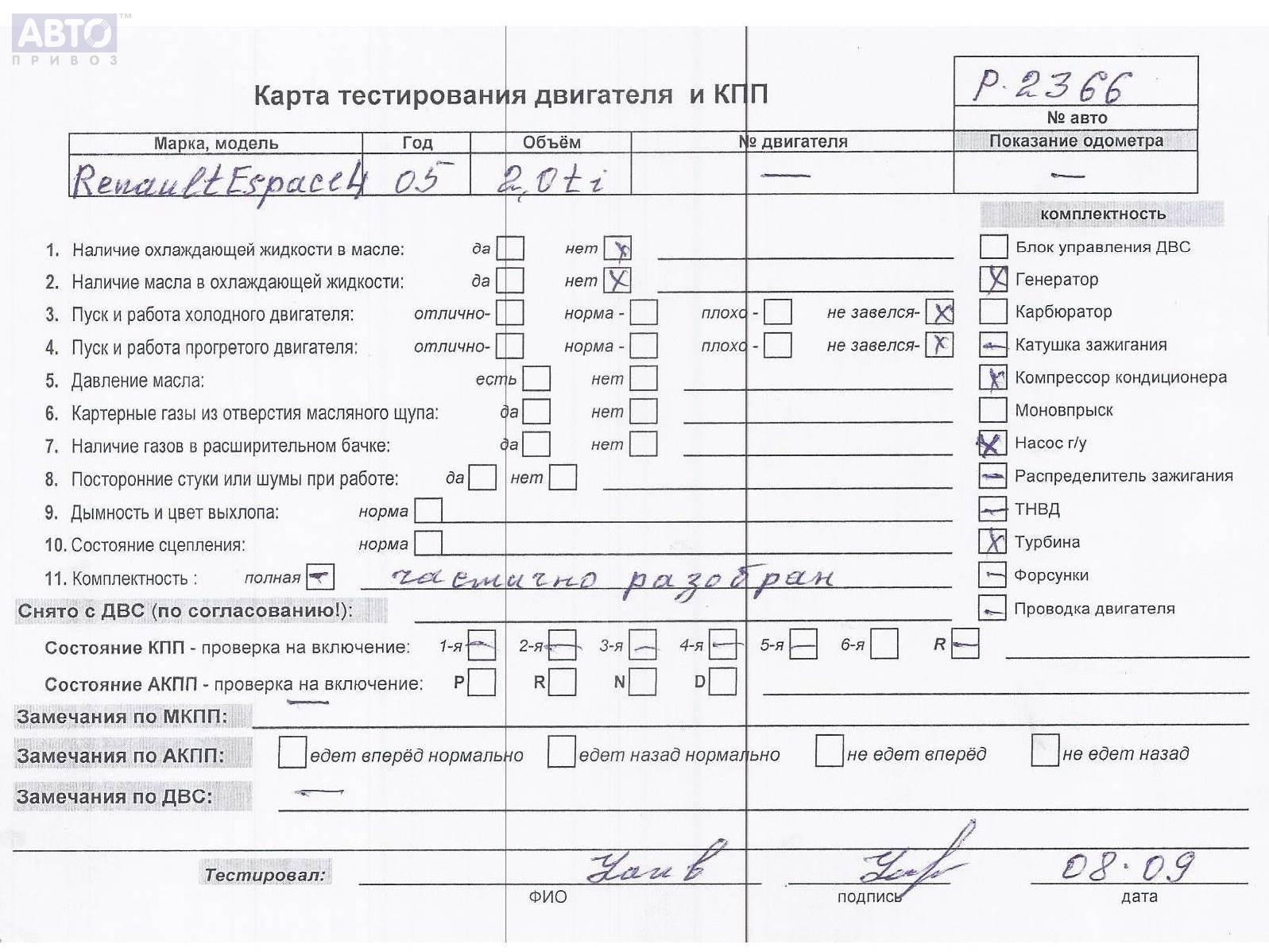 | Автомобиль / VIN: | P2366 VF1JK0AA634611219 |