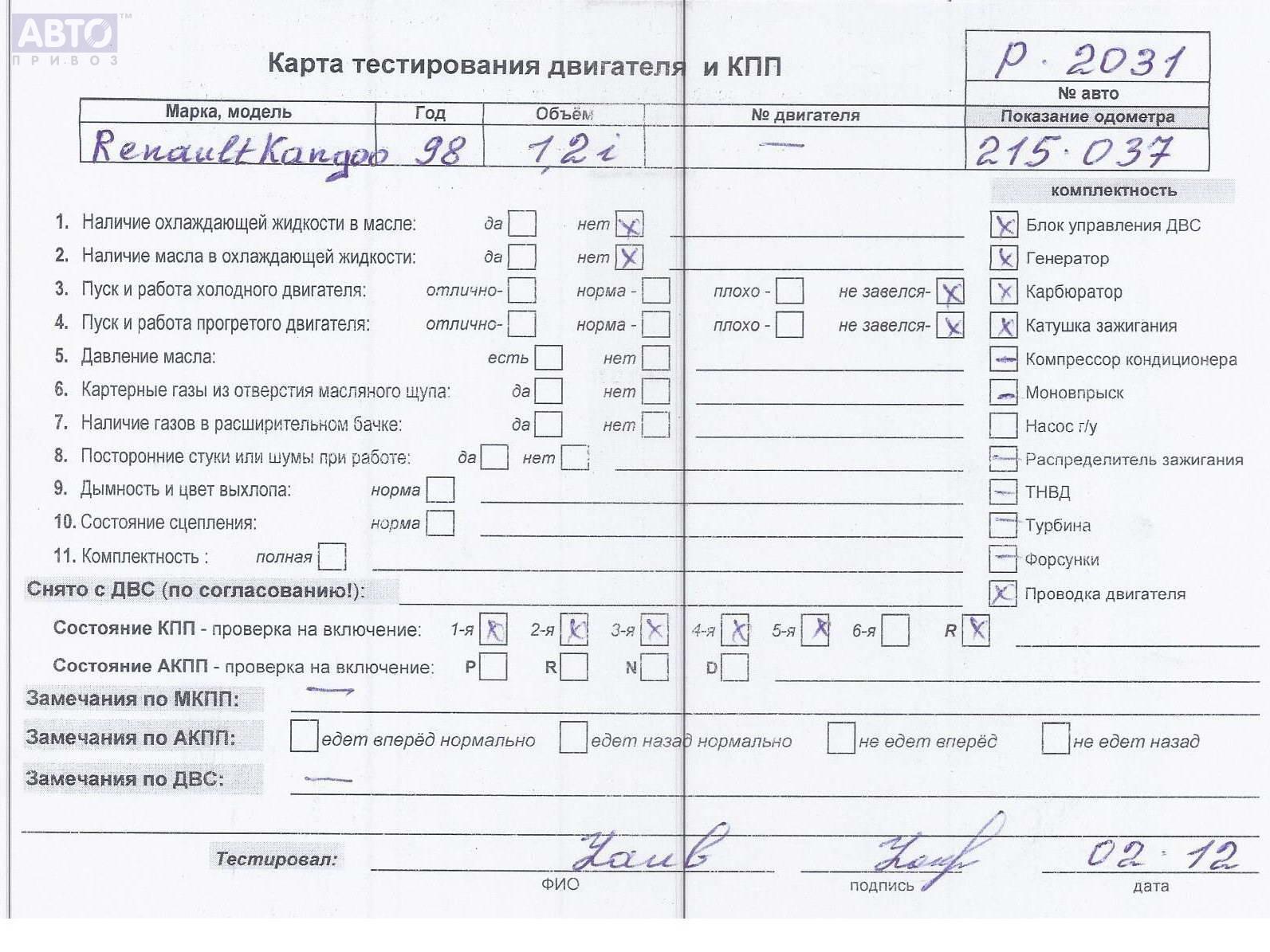 | Автомобиль / VIN: | P2031 VF1KC0AAF19006410 |