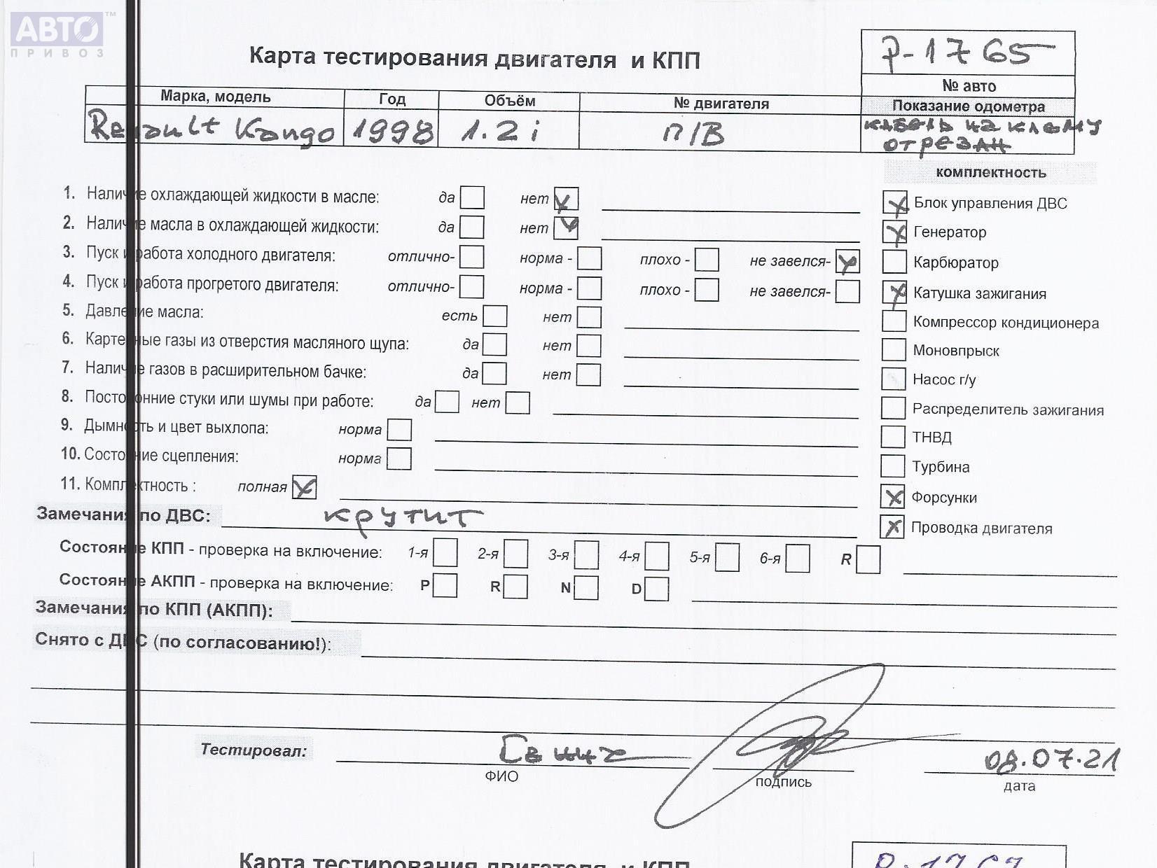 | Марка / Модель / Год: | Renault Kangoo I (1998-2008) 1998 |