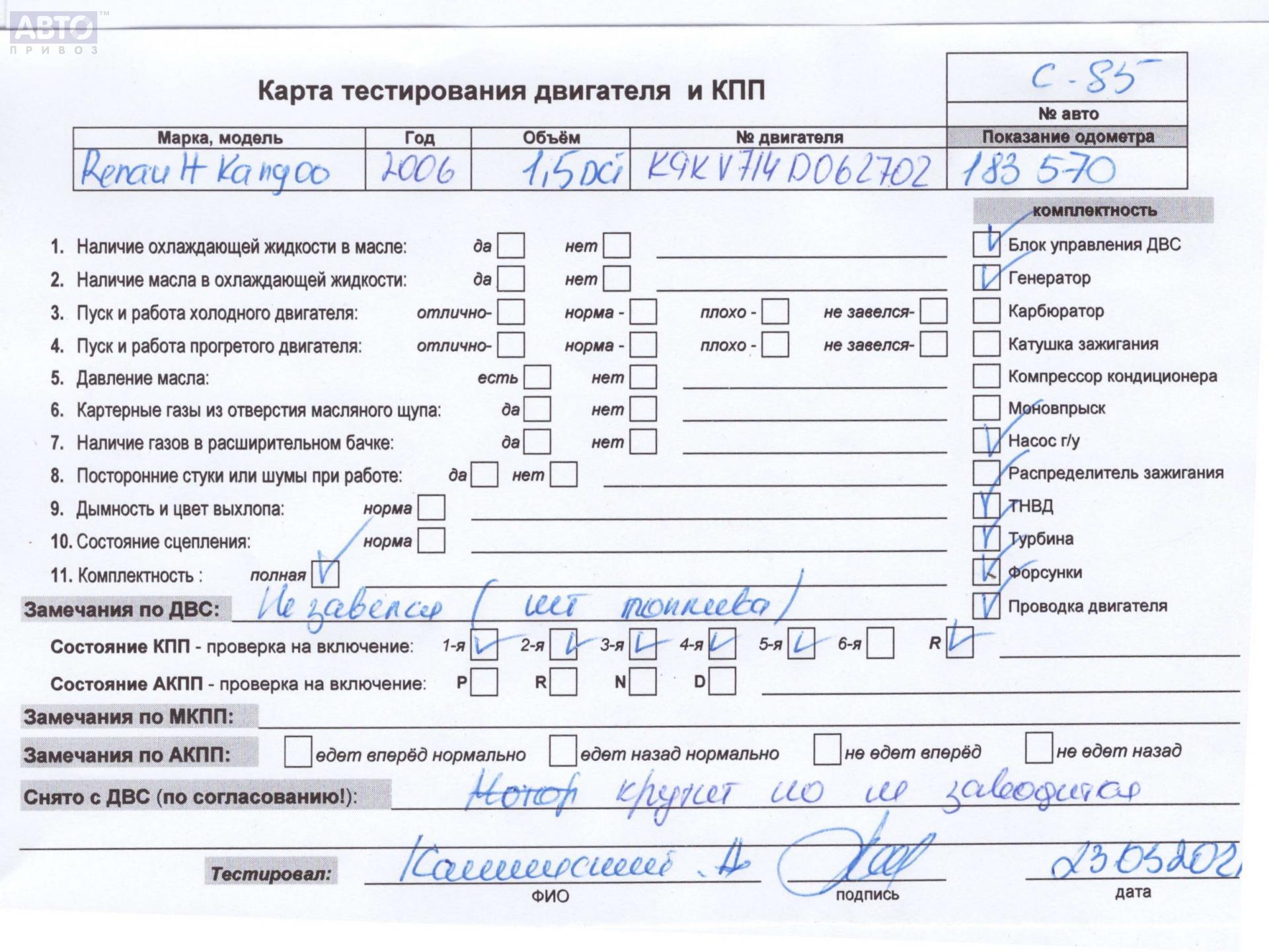 | Марка / Модель / Год: | Renault Kangoo I (1998-2008) 2006 |
