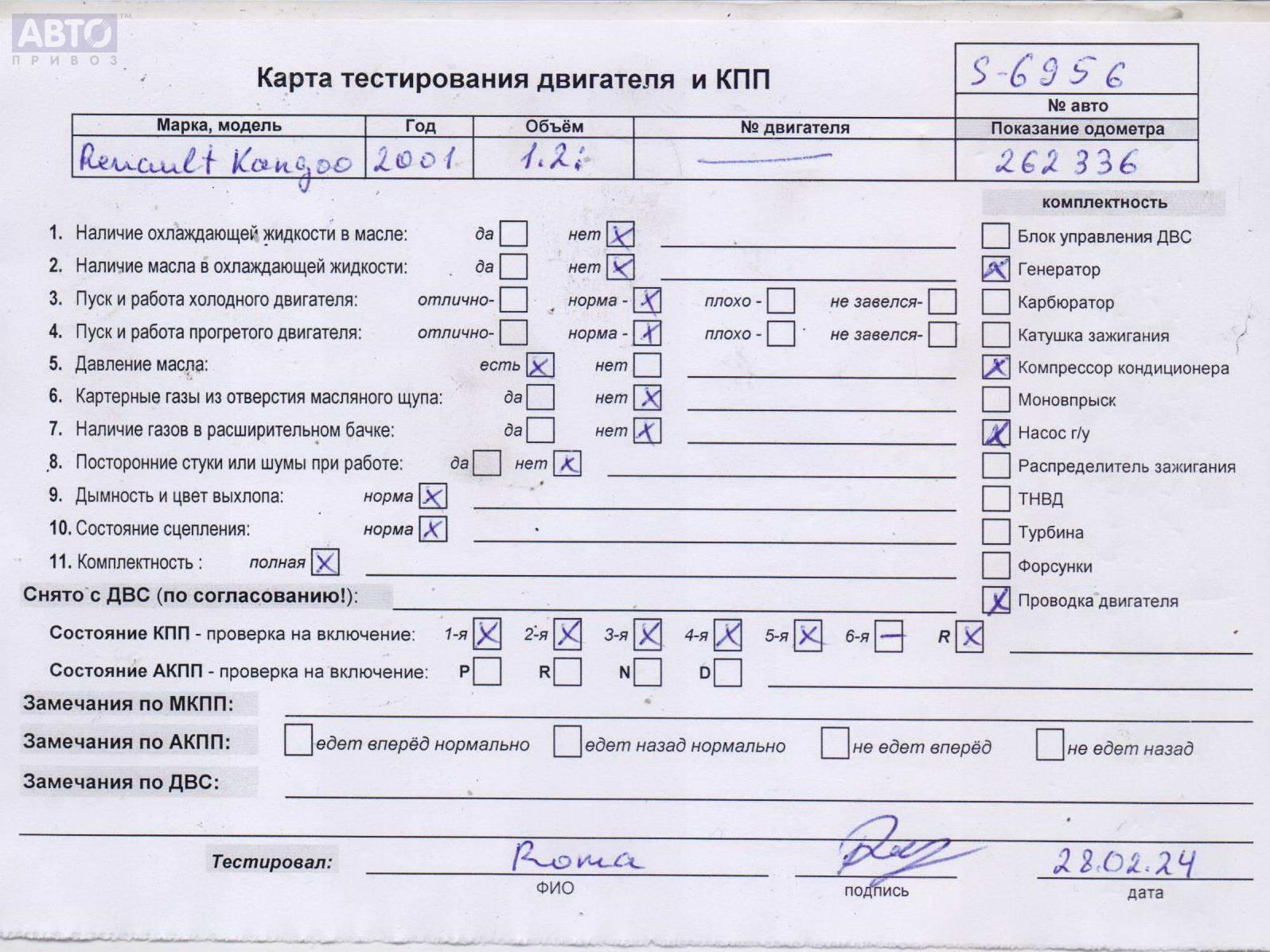 | Марка / Модель / Год: | Renault Kangoo I (1998-2008) 2001 |