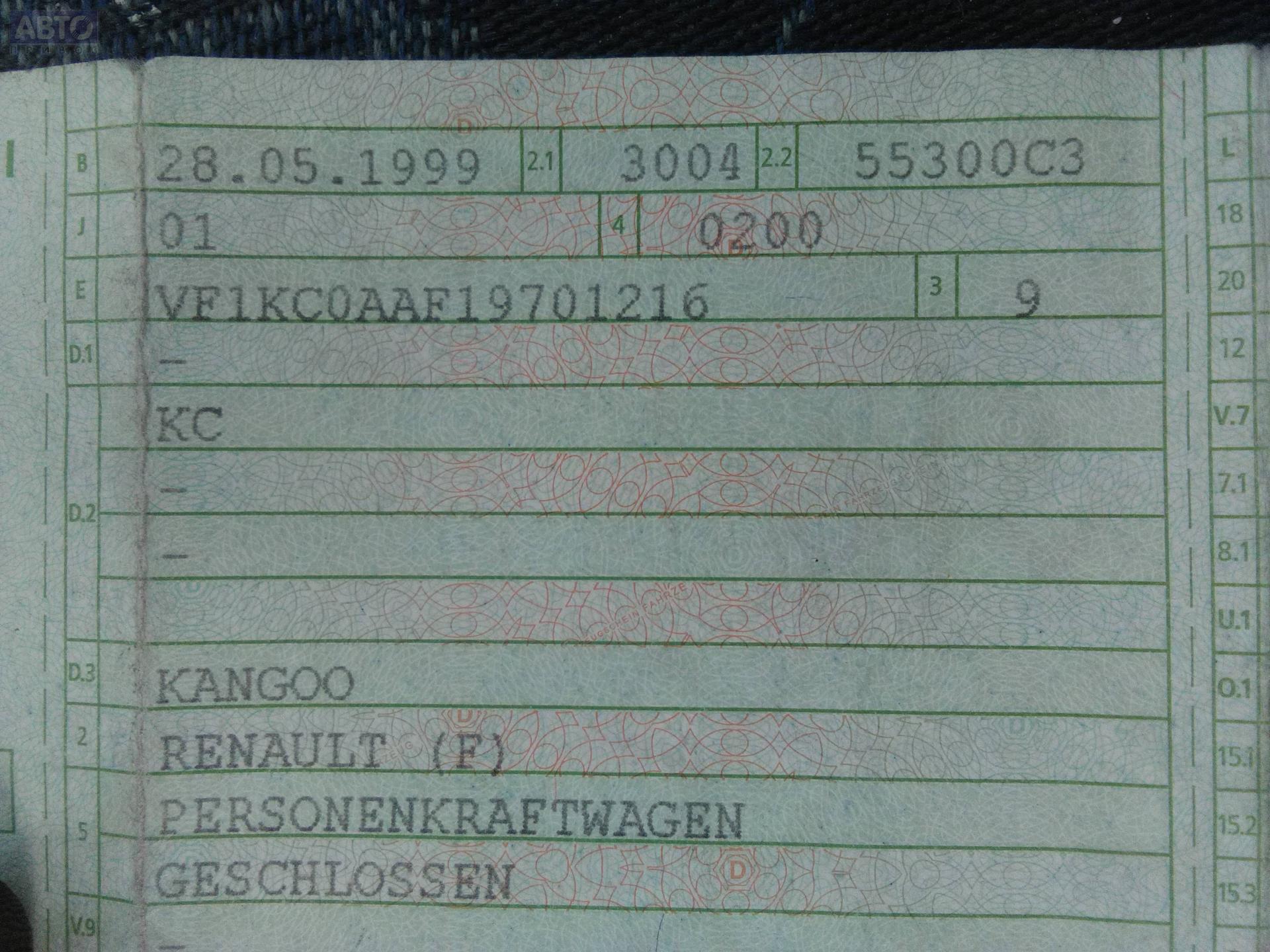 | Марка / Модель / Год: | Renault Kangoo I (1998-2008) 1998 |