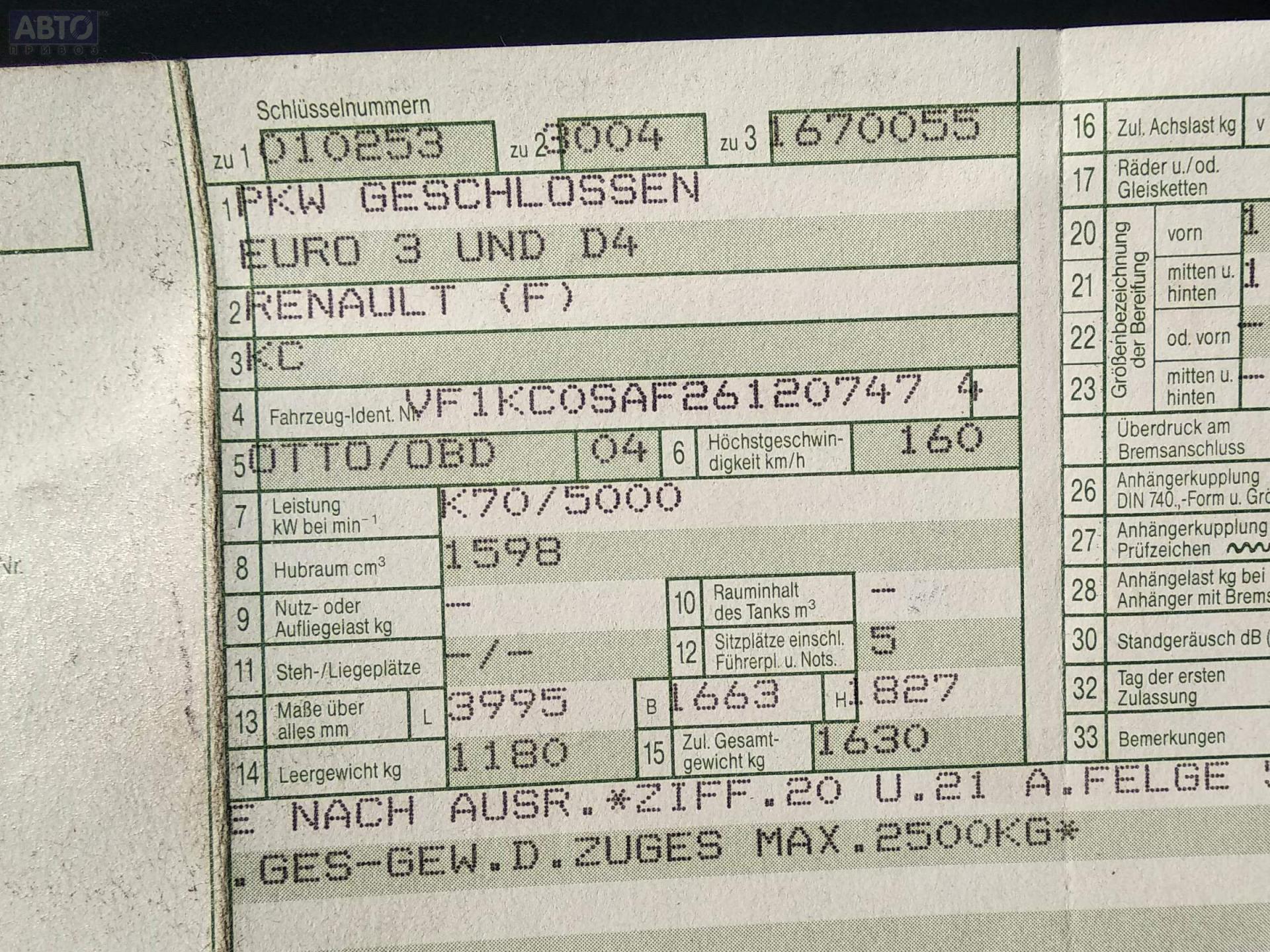 | Автомобиль / VIN: | P1161 VF1KC0SAF26120747 |