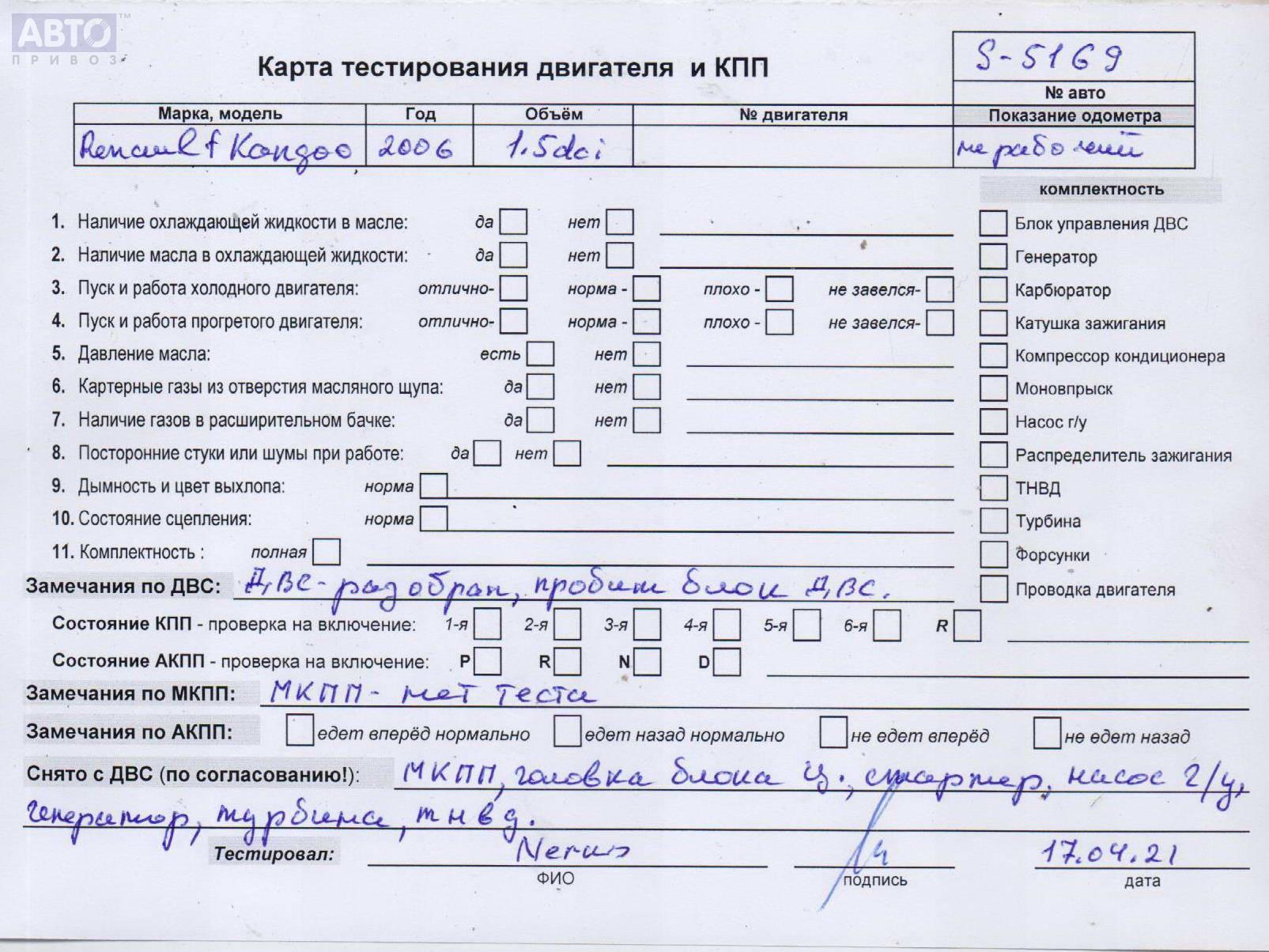 | Марка / Модель / Год: | Renault Kangoo I (1998-2008) 2006 |
