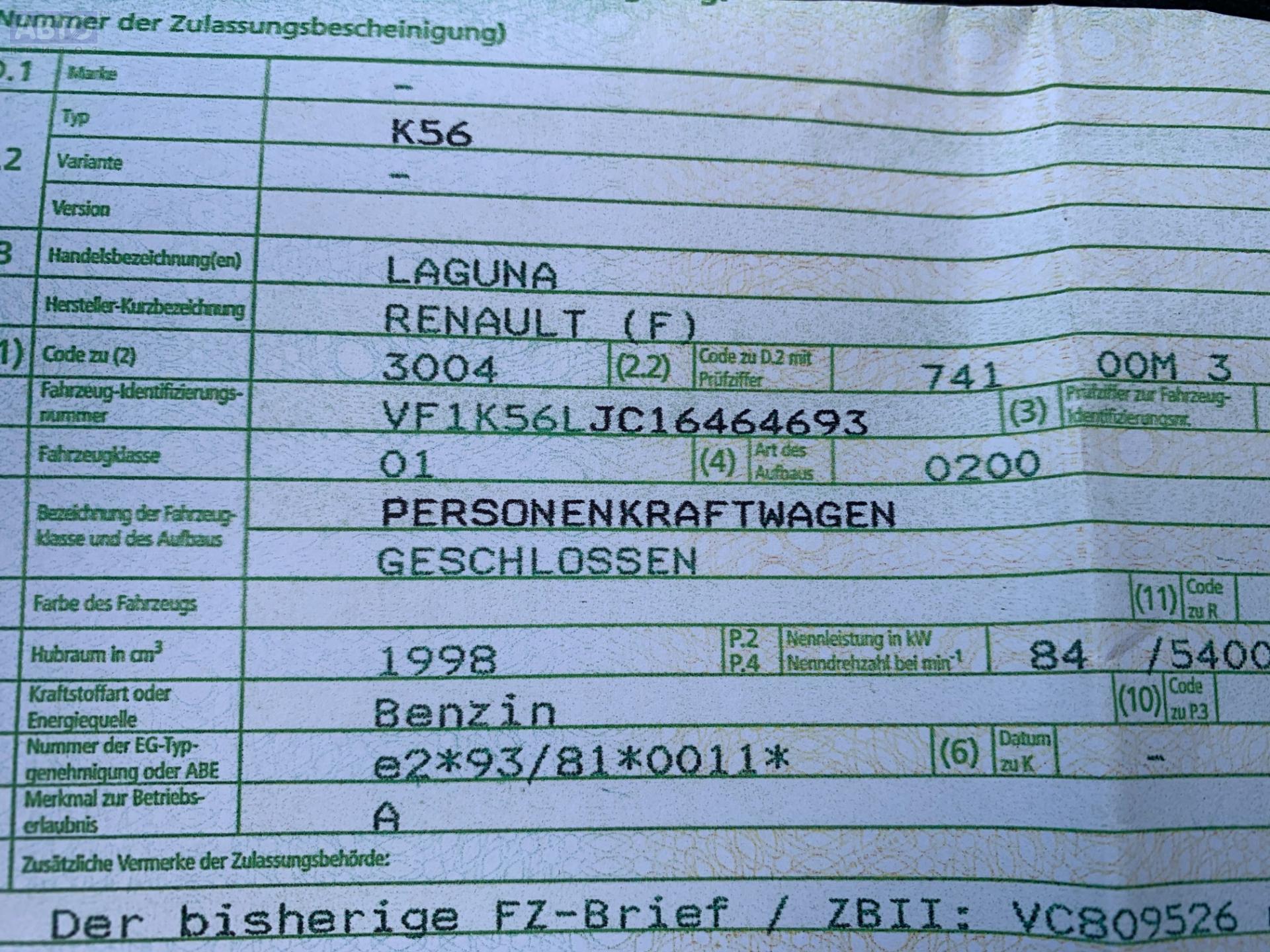 | Марка / Модель / Год: | Renault Laguna I (1993-2000) 1997 |