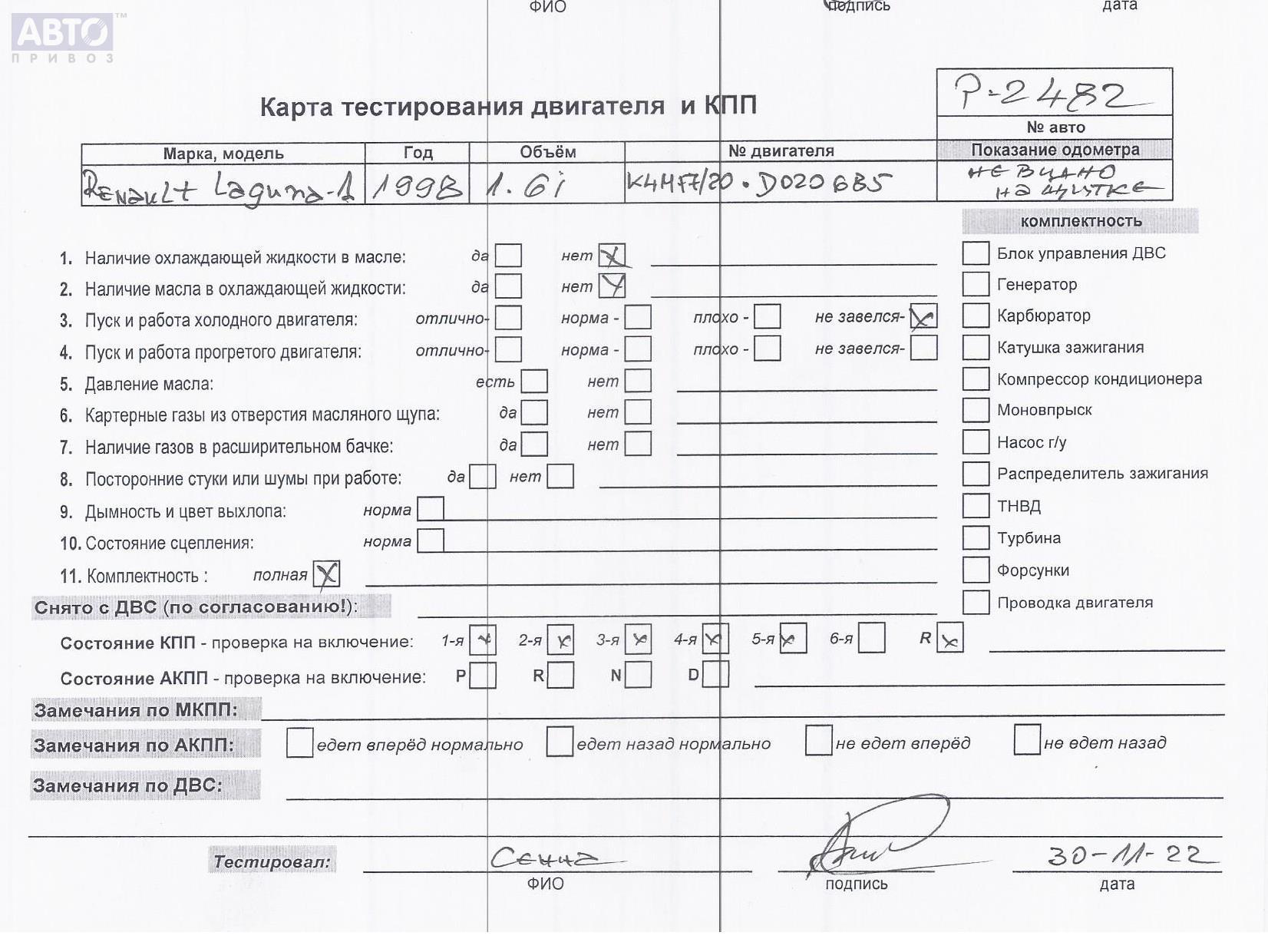 | Марка / Модель / Год: | Renault Laguna I (1993-2000) 1998 |