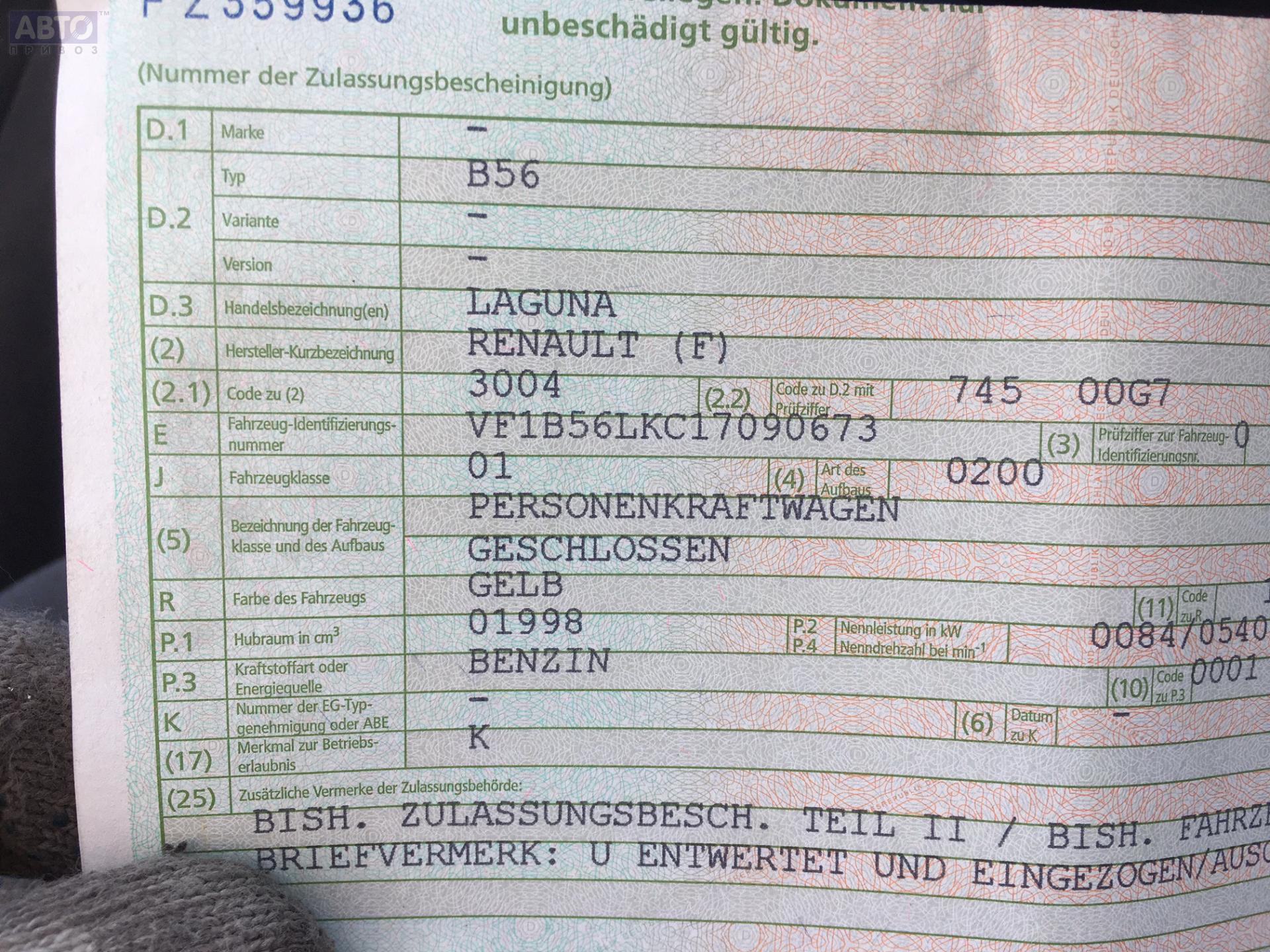 | Марка / Модель / Год: | Renault Laguna I (1993-2000) 1997 |