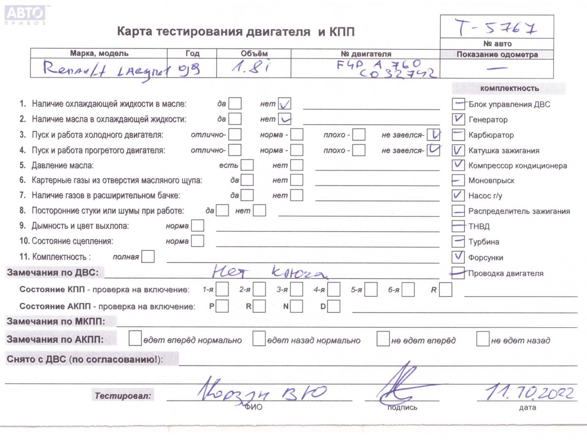 | Марка / Модель / Год: | Renault Laguna I (1993-2000) 1999 |