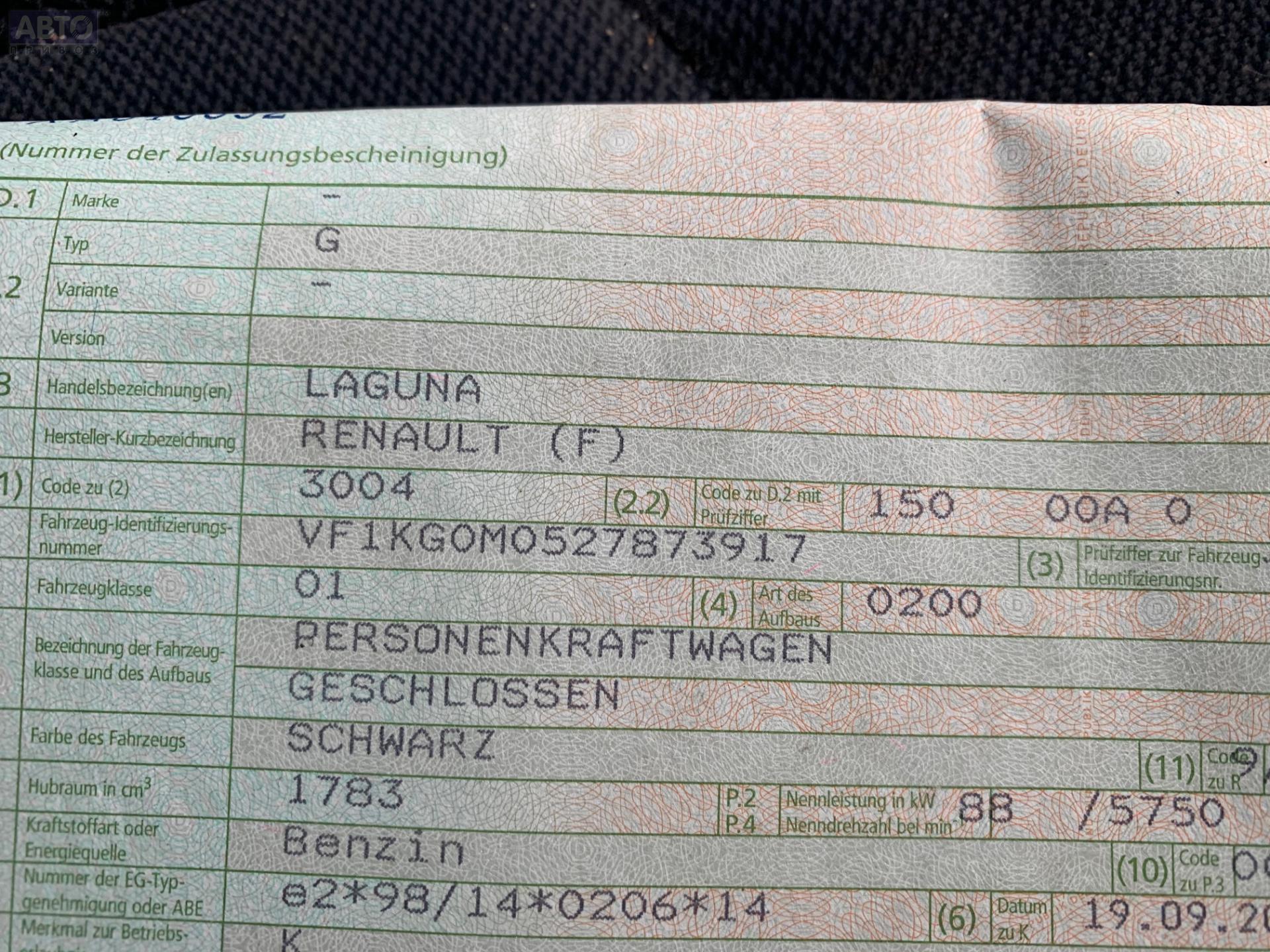 | Марка / Модель / Год: | Renault Laguna II (2001-2007) 2002 |