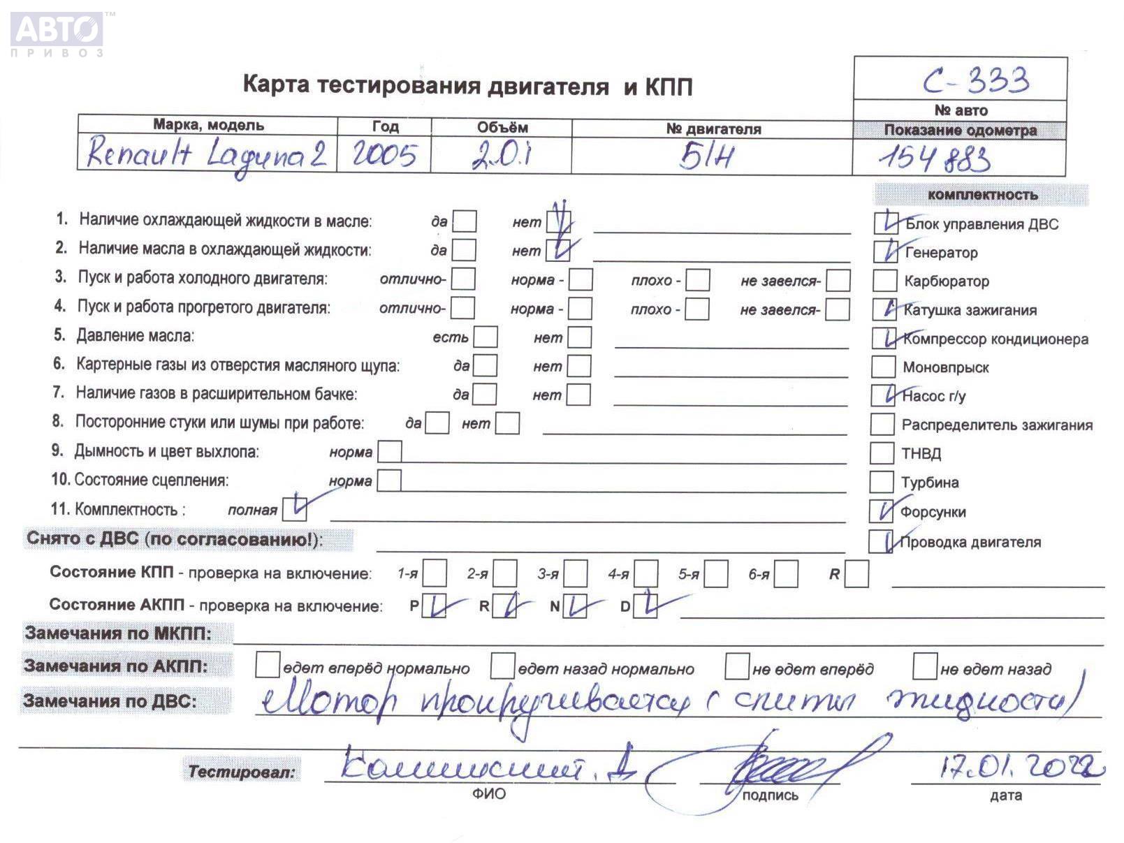 | Марка / Модель / Год: | Renault Laguna II (2001-2007) 2005 |