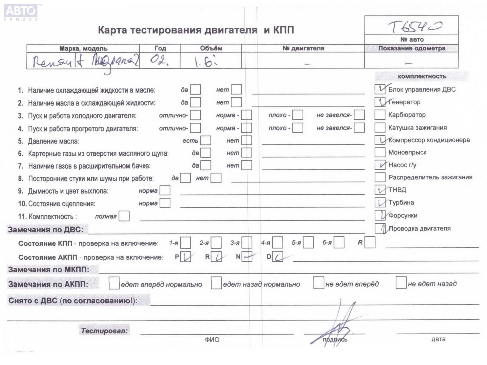 | Автомобиль / VIN: | T6540 VF1BG0K0A27881272 |