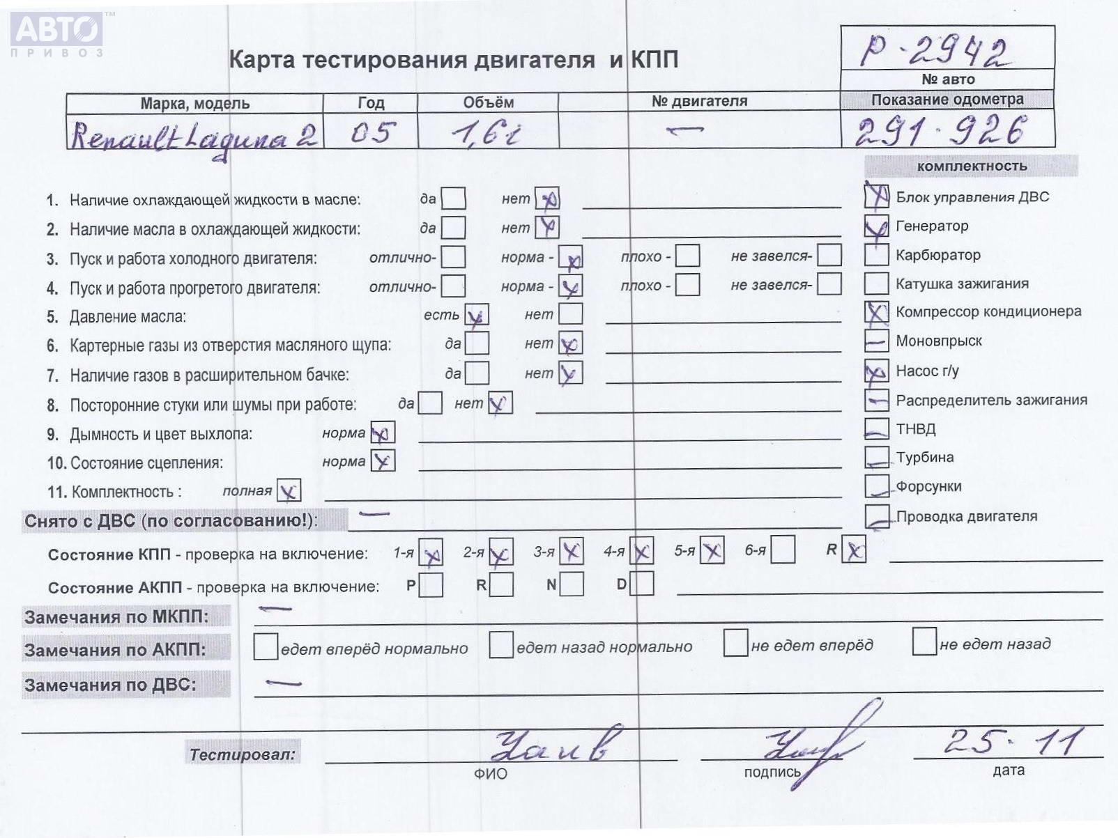 | Автомобиль / VIN: | P2942 VF1KG4HBE34771771 |