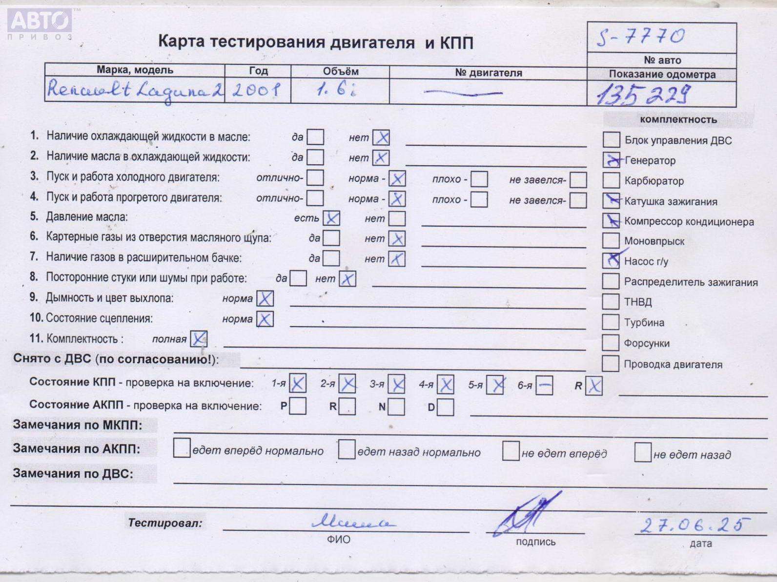 | Автомобиль / VIN: | S7770 VF1BG0A0525417820 |