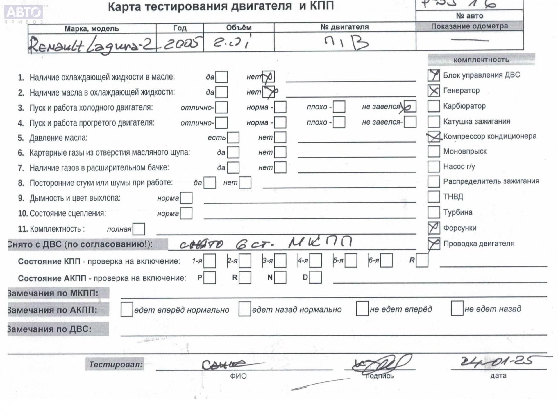 | Марка / Модель / Год: | Renault Laguna II (2001-2007) 2006 |