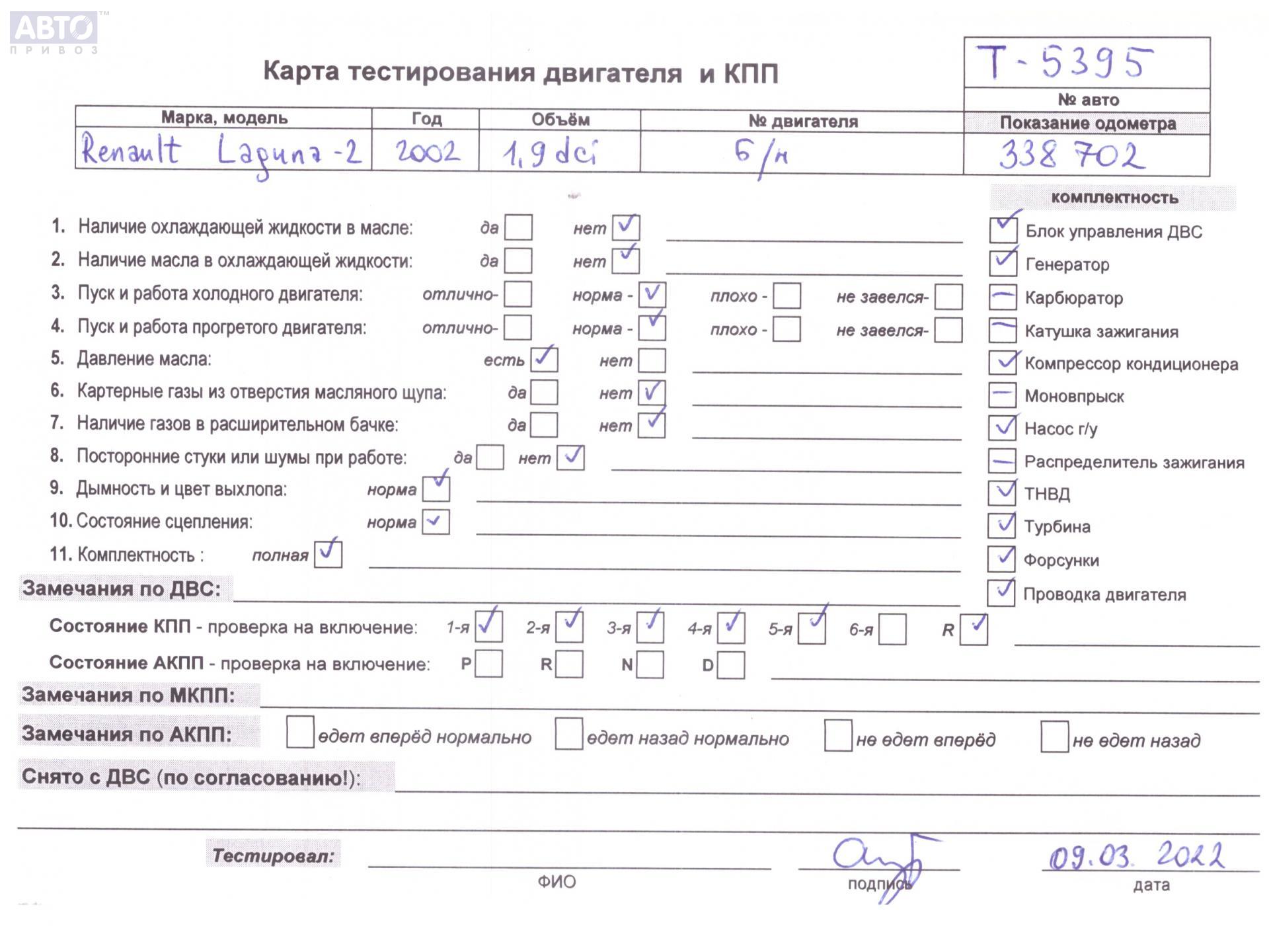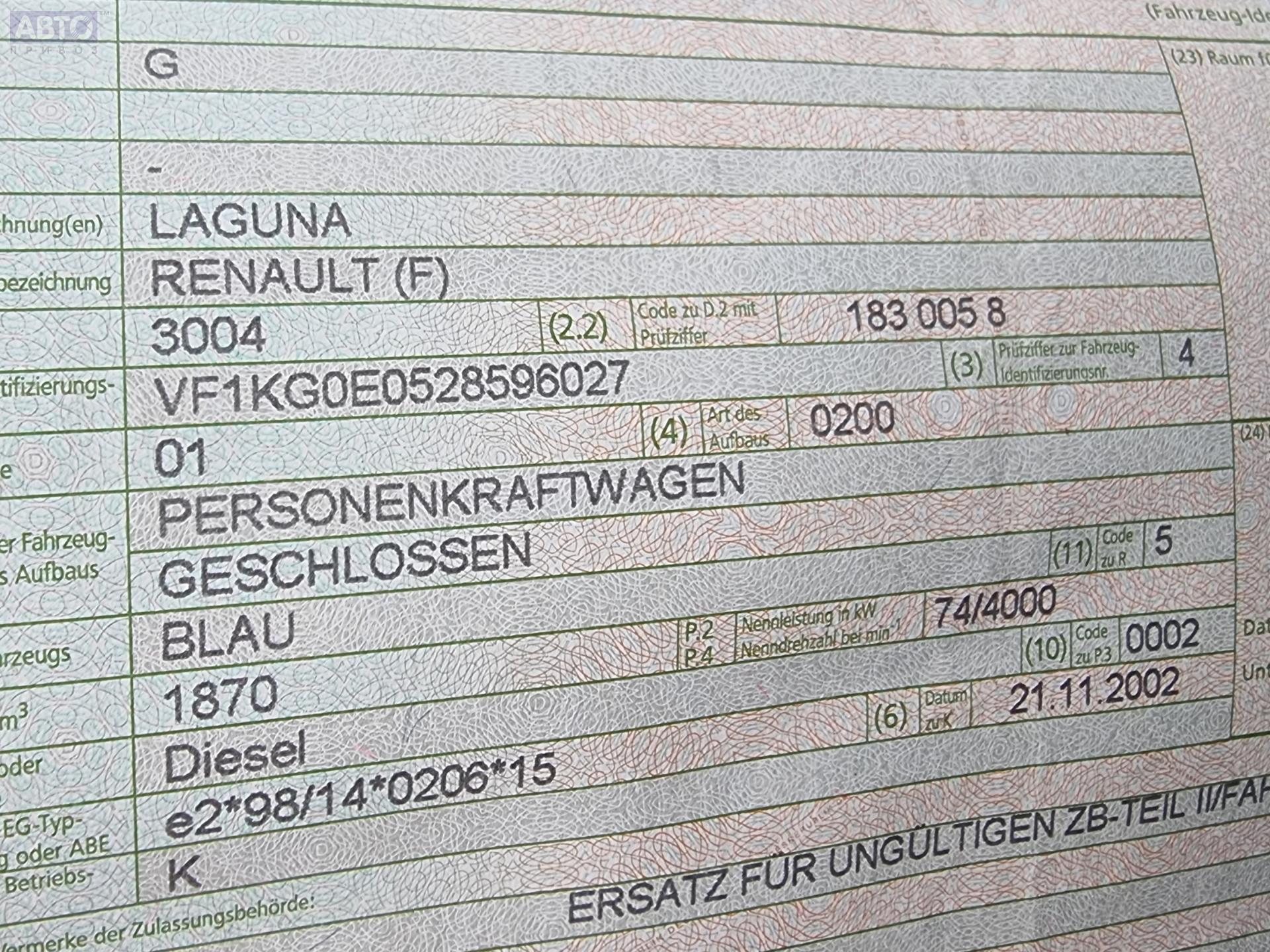 | Марка / Модель / Год: | Renault Laguna II (2001-2007) 2002 |
