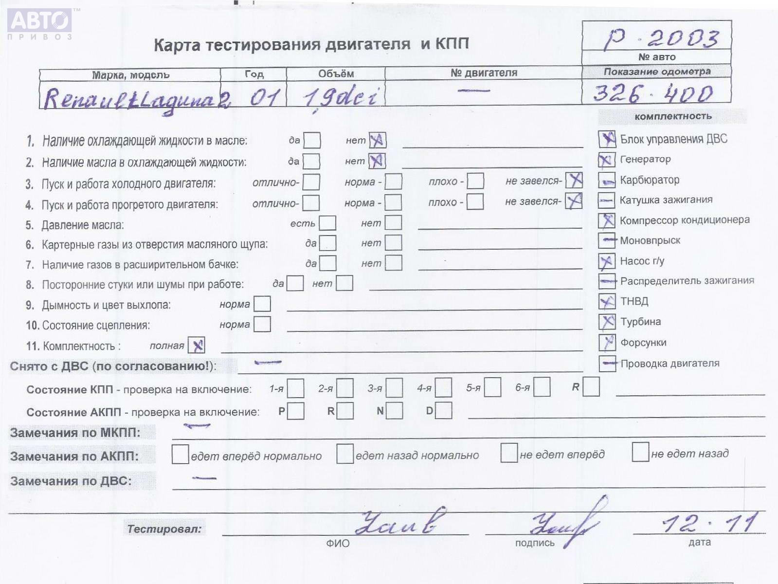 | Марка / Модель / Год: | Renault Laguna II (2001-2007) 2001 |